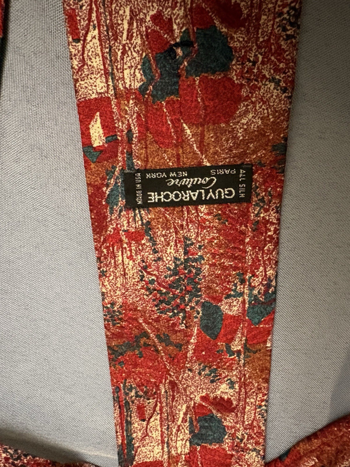 как выглядит Guy Laroche Couture Silk Tie Abstract Red Gold Green Made in USA фото