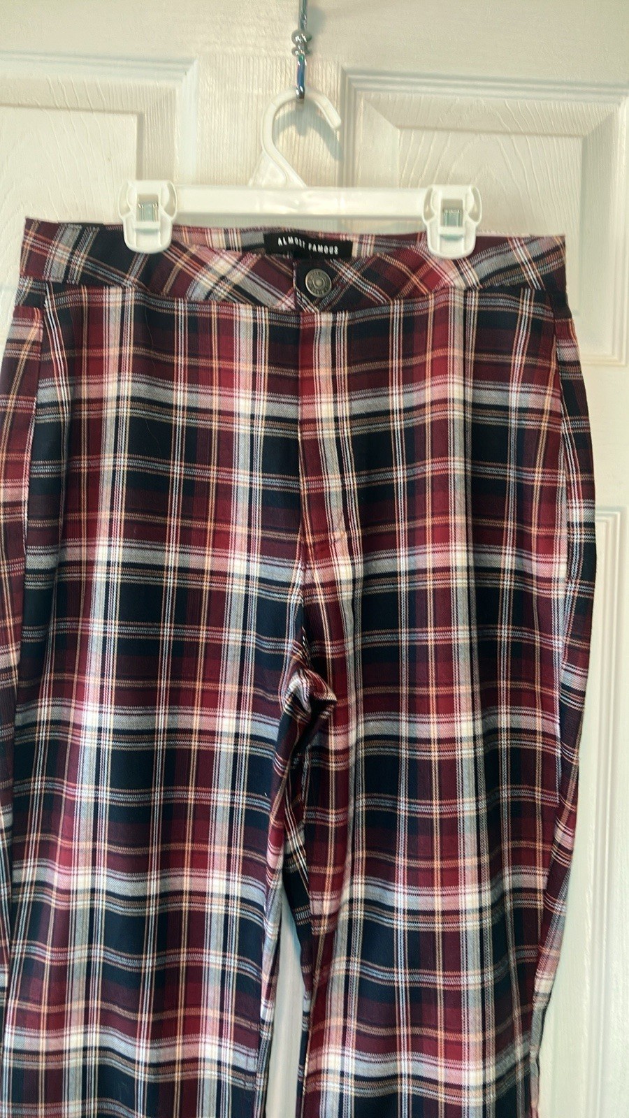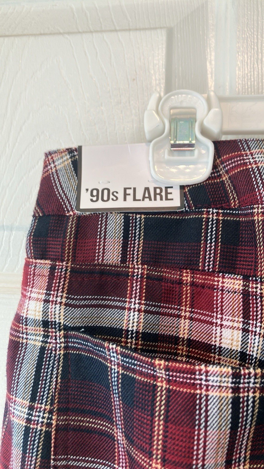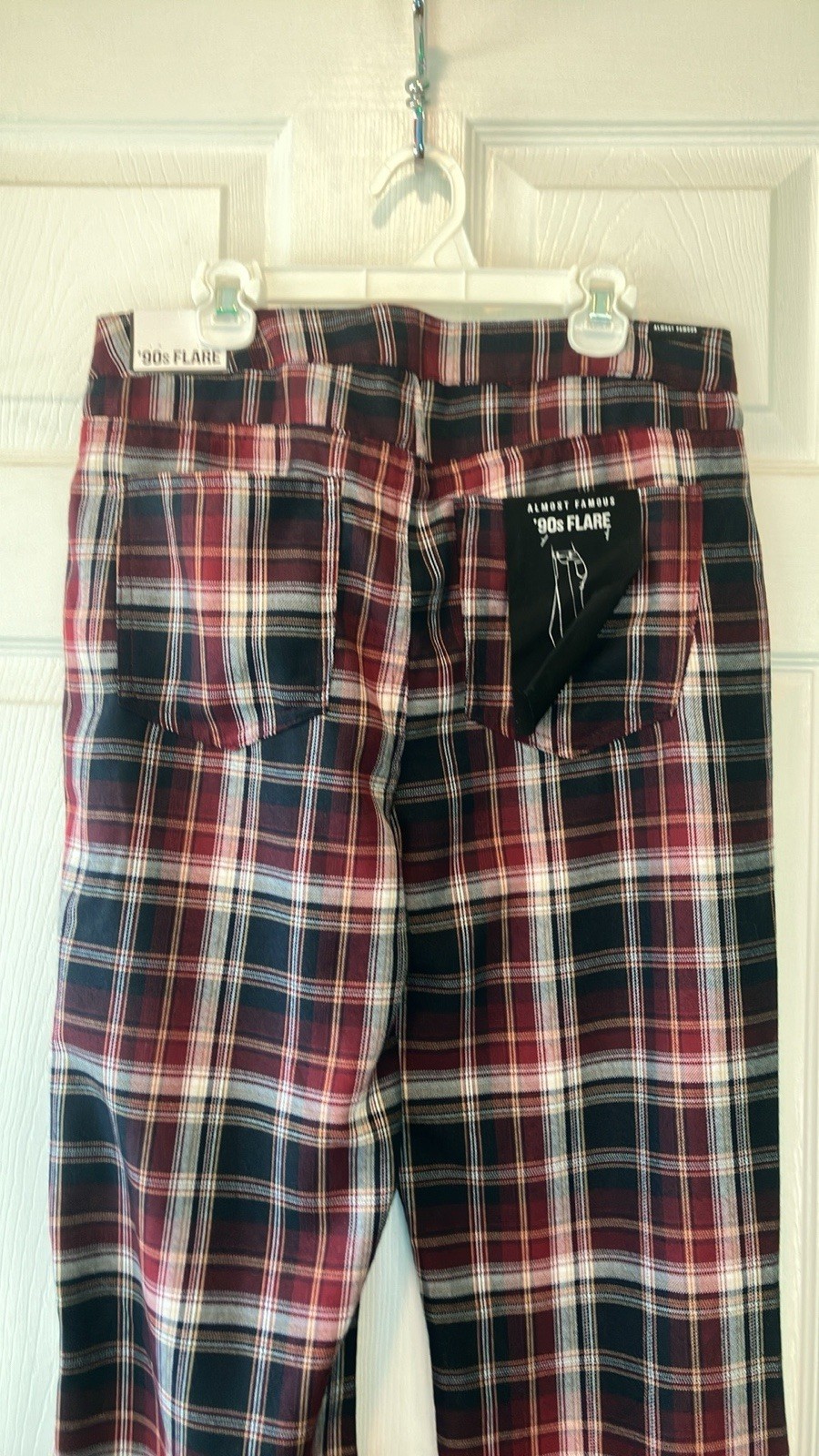 Plaid Flare Pants NWT maroon navy white size 7 almost famous 90s retro