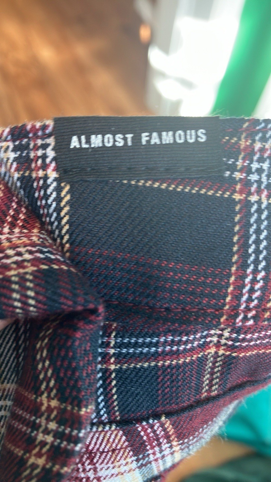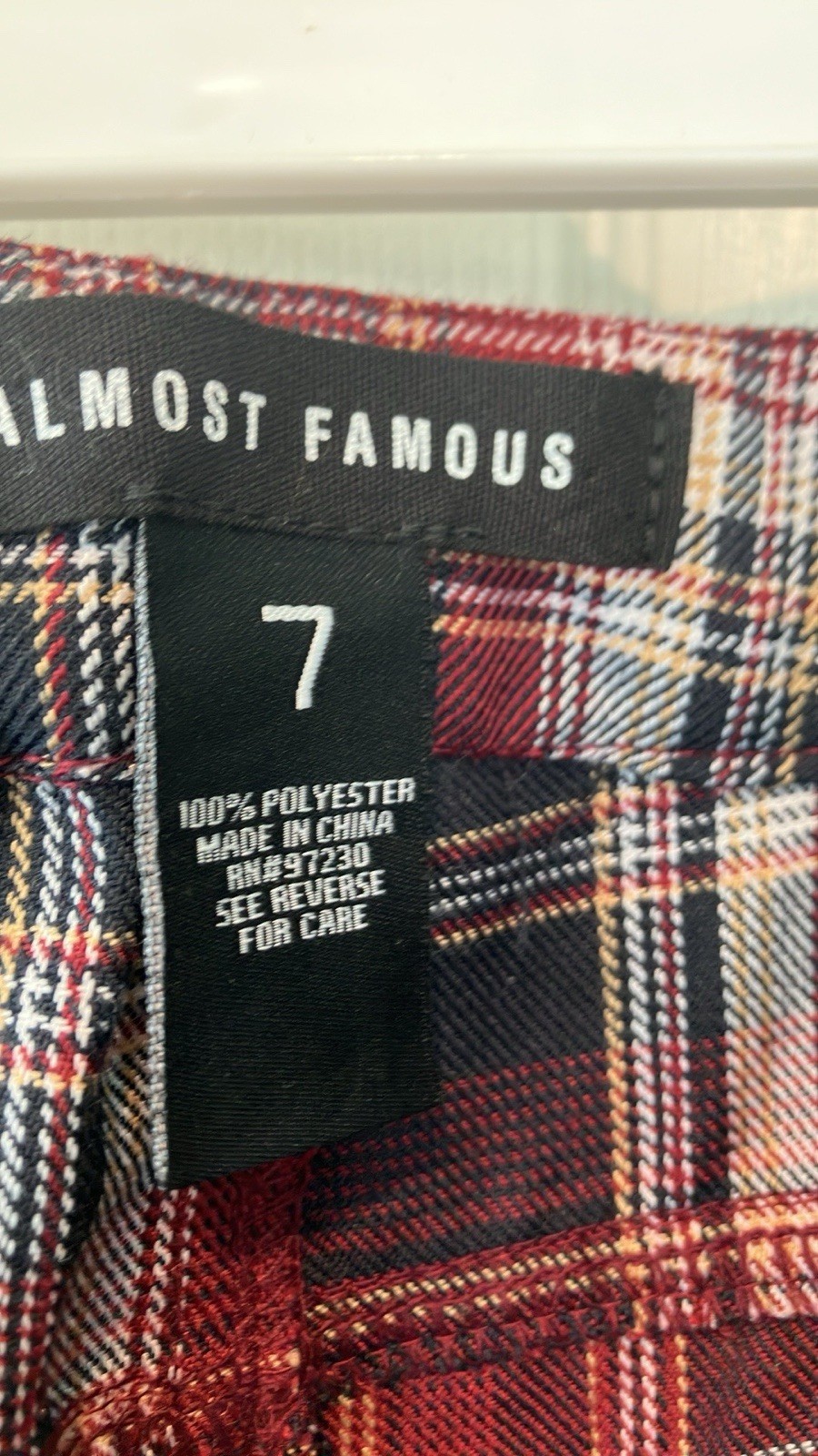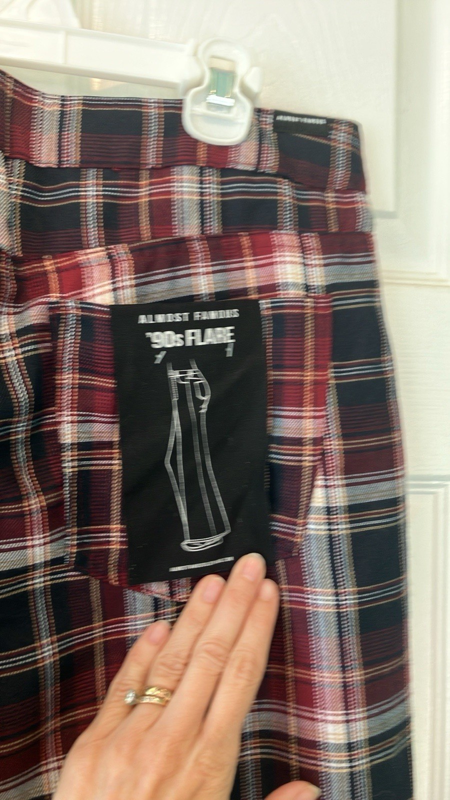 Plaid Flare Pants NWT maroon navy white size 7 almost famous 90s retro