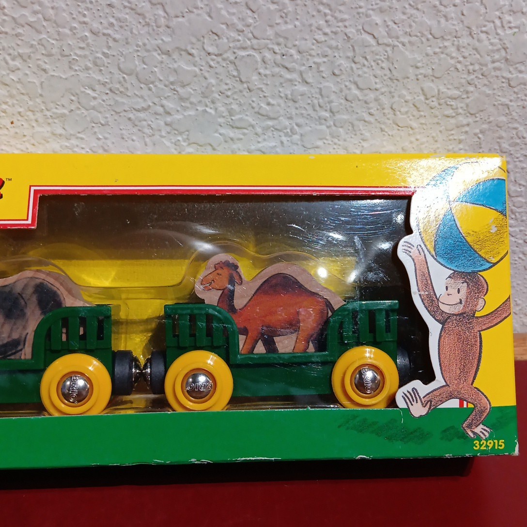 NOS 32915 Curious George Wooden Zoo Wagons 2002 Brio Camel Rhino