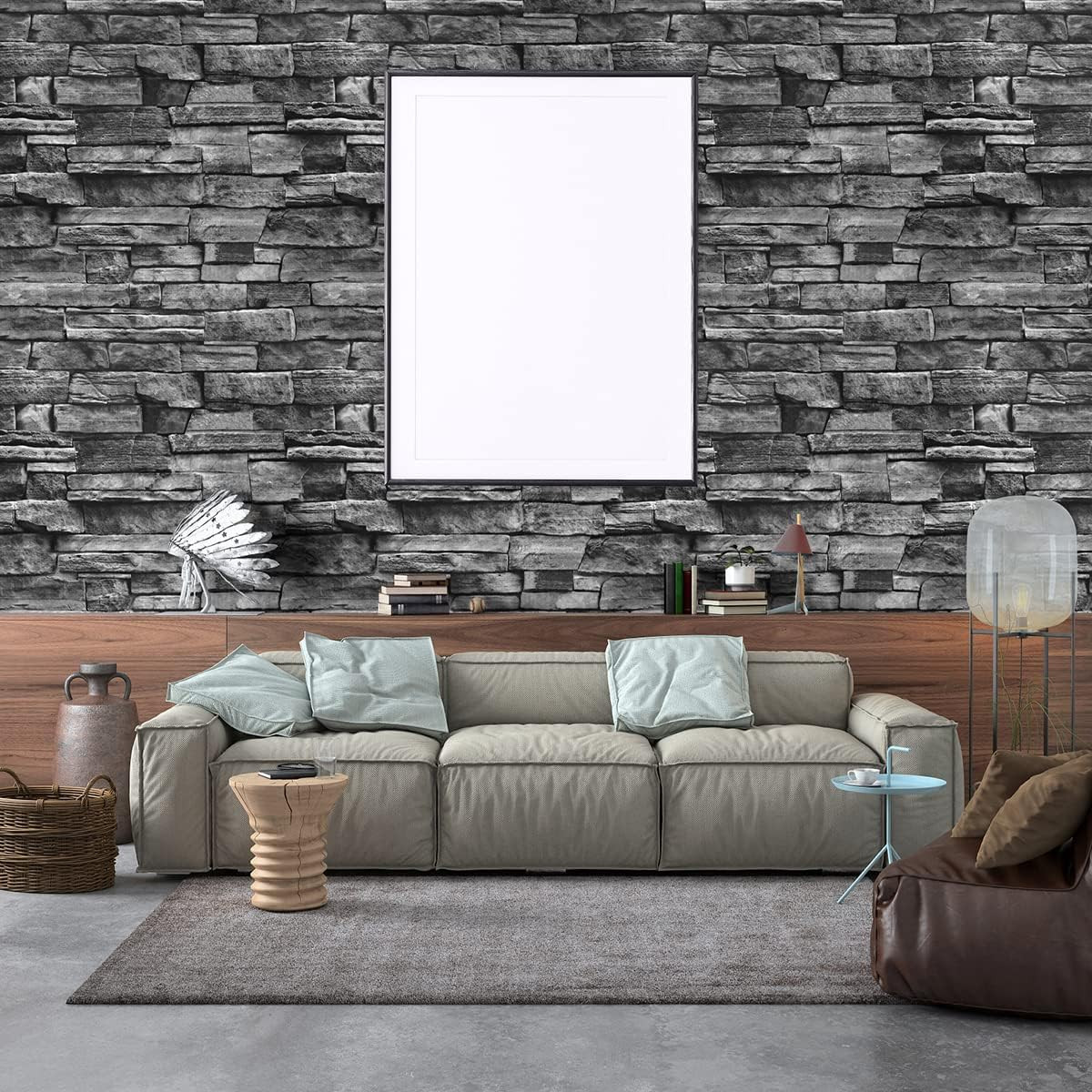 Grey Brick Wallpaper Peel and Stick Wallpaper 17.7Inch 118.1Inch Faux Stone Self
