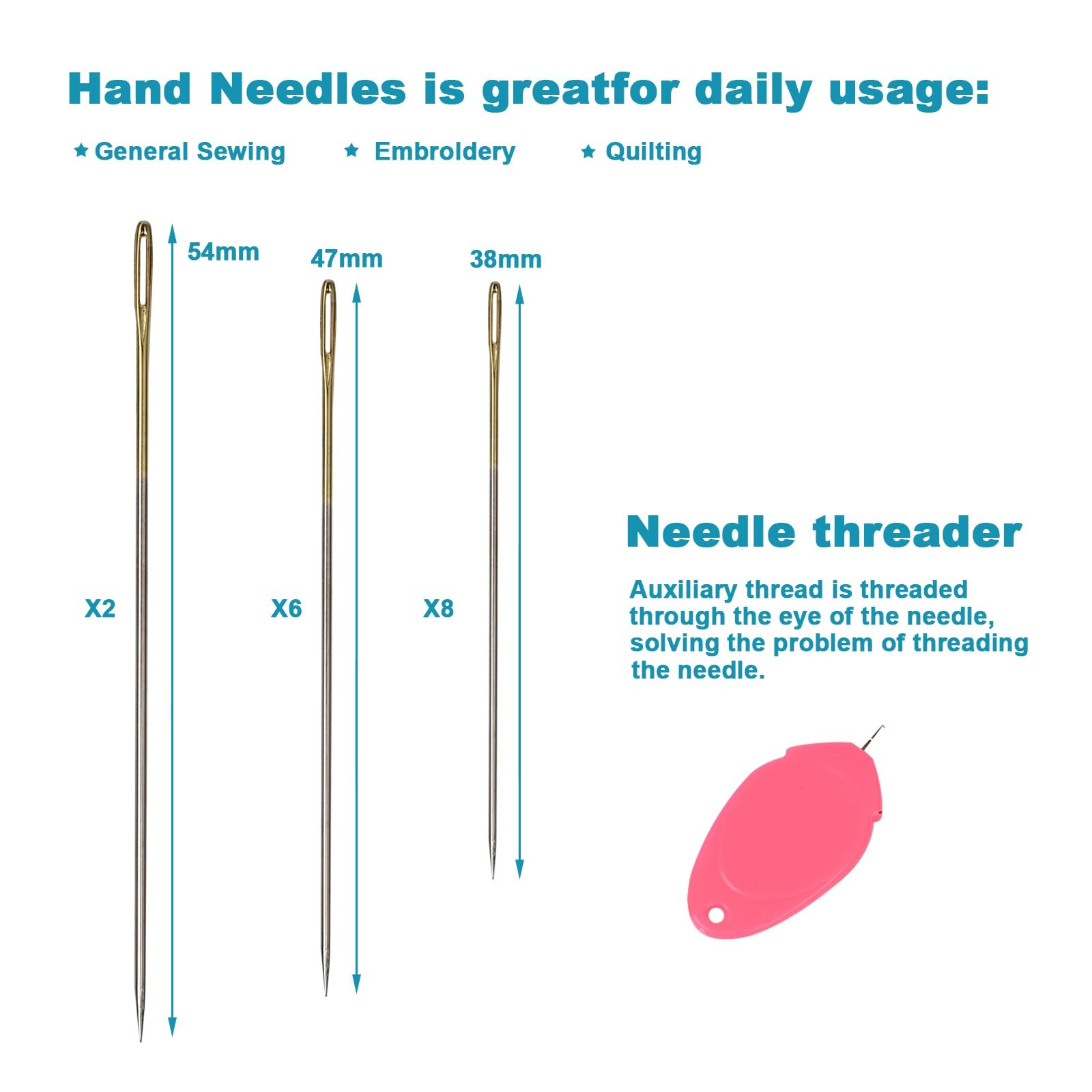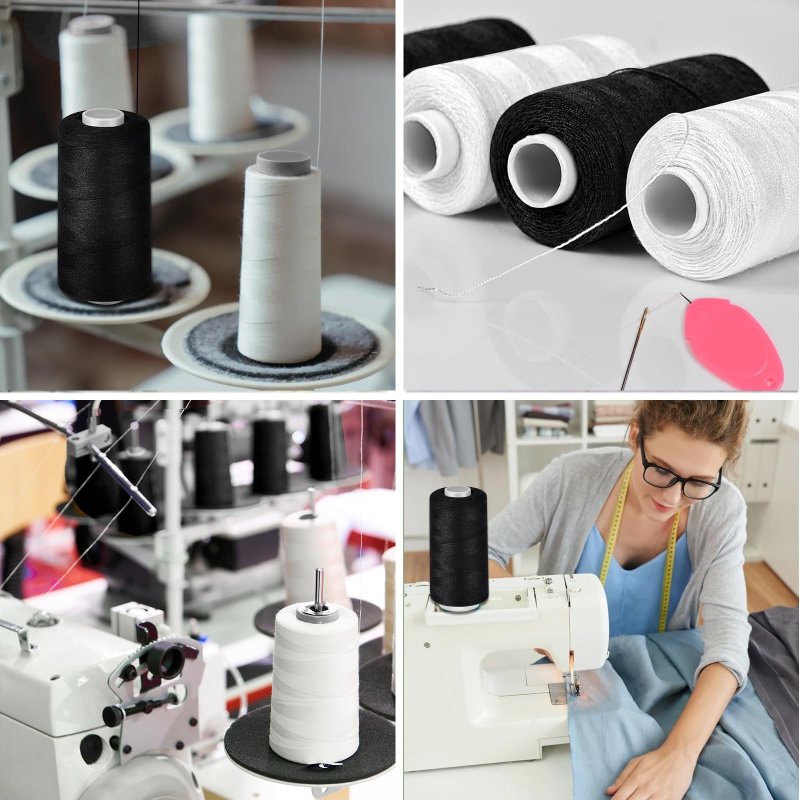 Polyester Sewing Thread Set 6 Spools Black White 400yd Each with Needle Threader