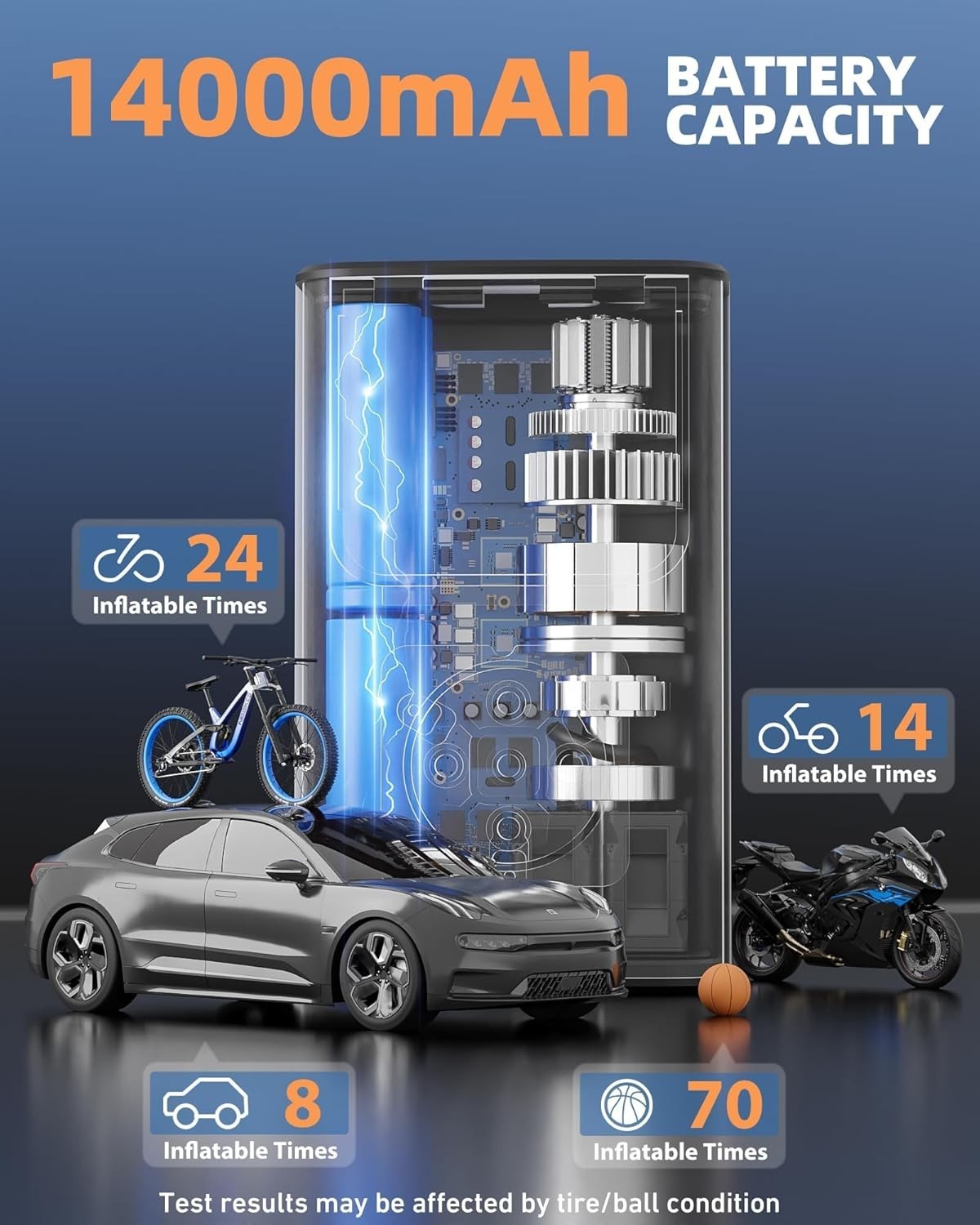 как выглядит 150 PSI Air Compressor Tire Inflator Fits Car Moto Bike Tires Air Pump Cordless фото