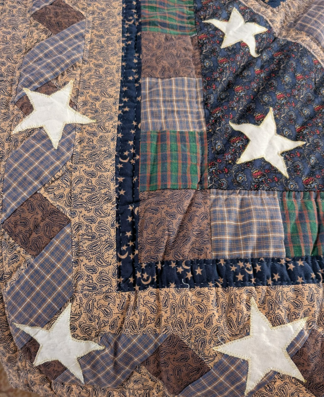 Quilt Handmade Variety of Angels and Stars Dark Blues, Tans White 48x59