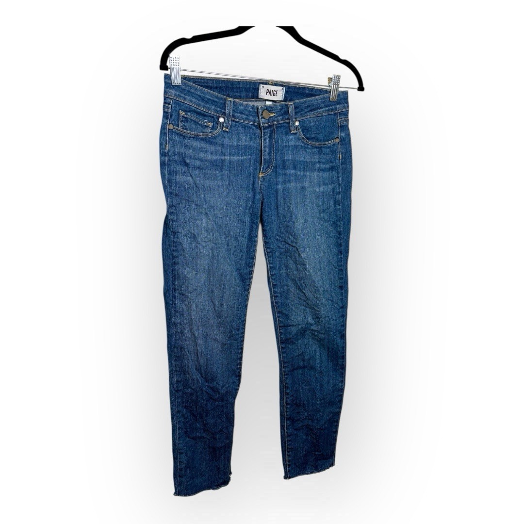 Paige Blue Mid-Rise Skinny Ankle Jeans Distressed Detail Minimalist Sz 27