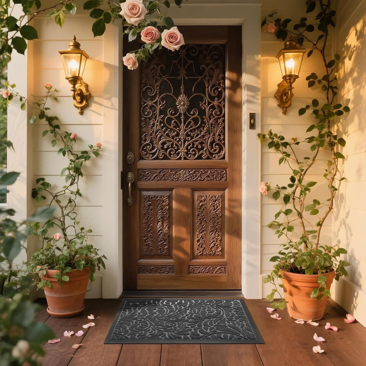 Front Door Mat Outdoor Indoor, Waterproof, Non Slip, Groove Design Entryway Grey