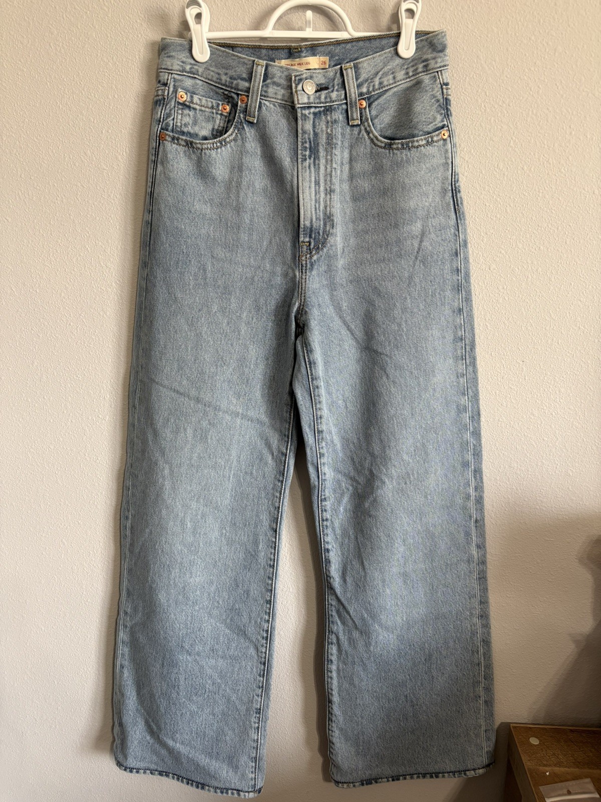 как выглядит Levis Jeans Womens 26 Ribcage Wide Leg Blue Light Wash Hi Rise Premium Denim фото