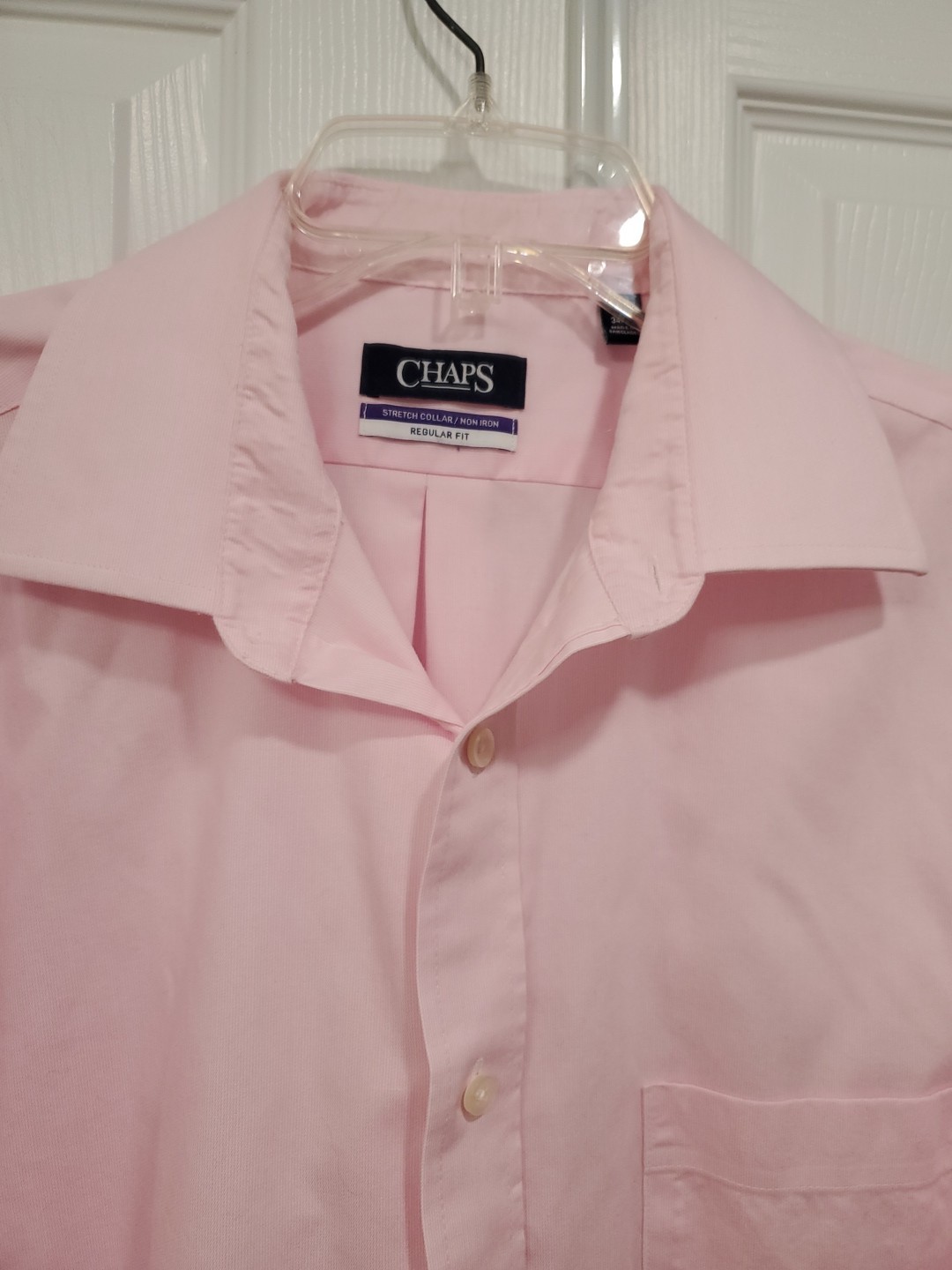 как выглядит Chaps Mens Button-Up Dress Shirt Sz 16 1/2 34-35 Regular Fit Pink Long Sleeve фото