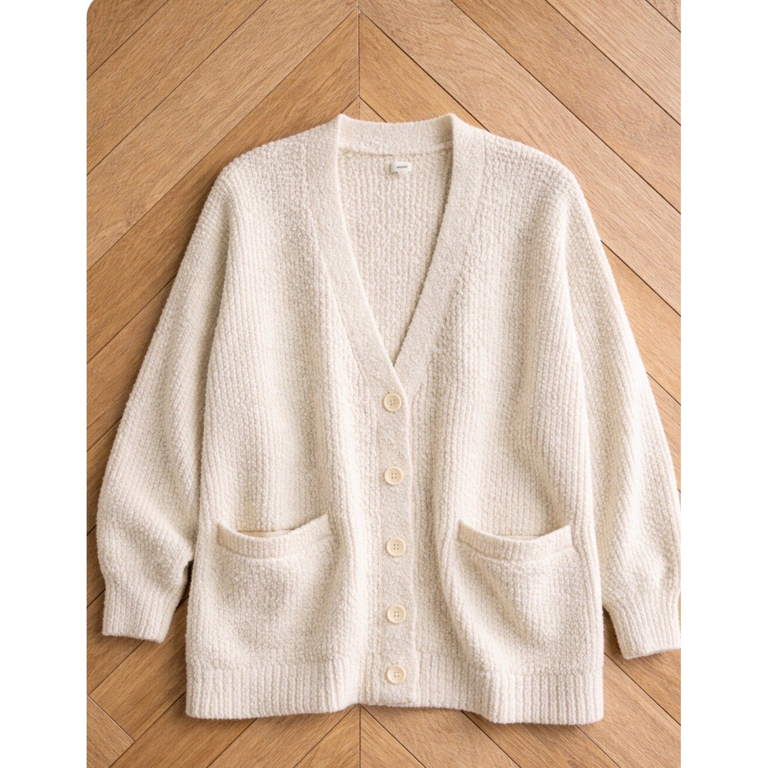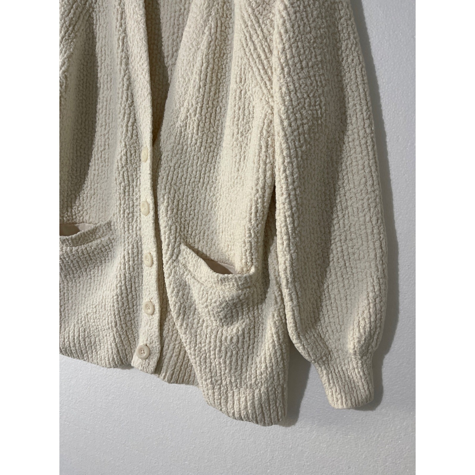 как выглядит Aerie Textured Knit Boyfriend Cardigan Cream Ivory Button Front Pockets Size S фото