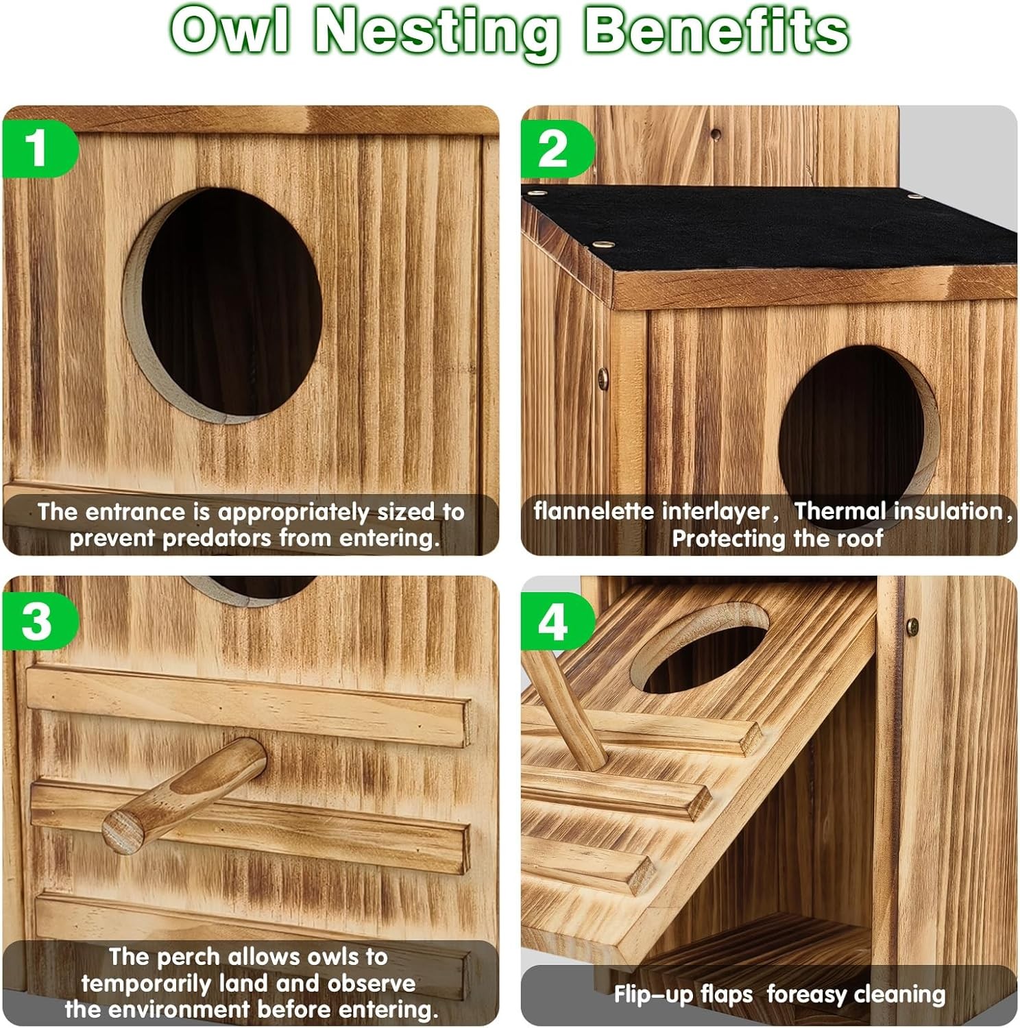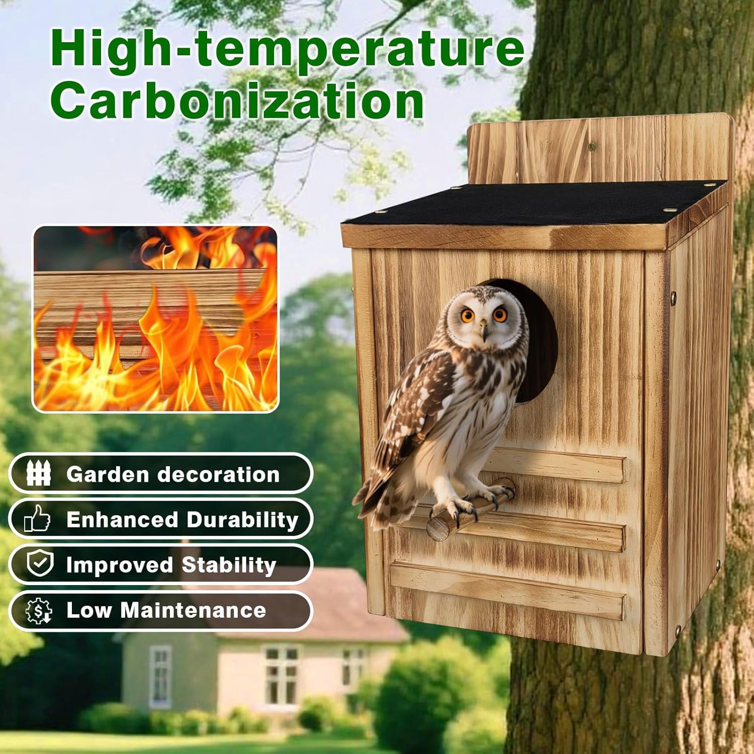 • Screech Owl House, Owl Bird Box Large Handmade Wooden Circular Opening Screech