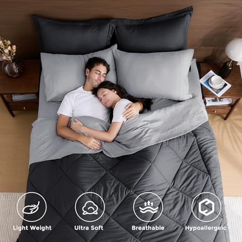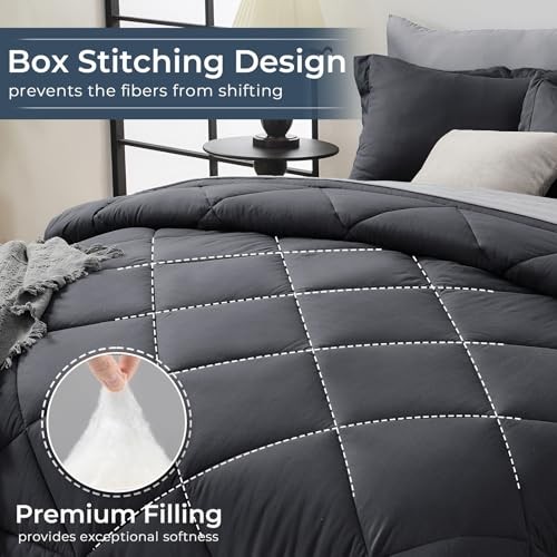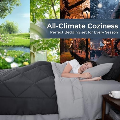 Comforter Set - 7-Piece All Season Bed in a Bag Ultra Queen Dark Light Grey