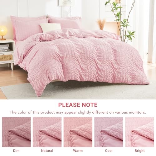 Queen Comforter Set Seersucker 7 Pieces, All Season Queen 88x 88 Pink