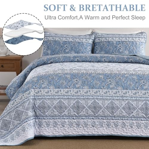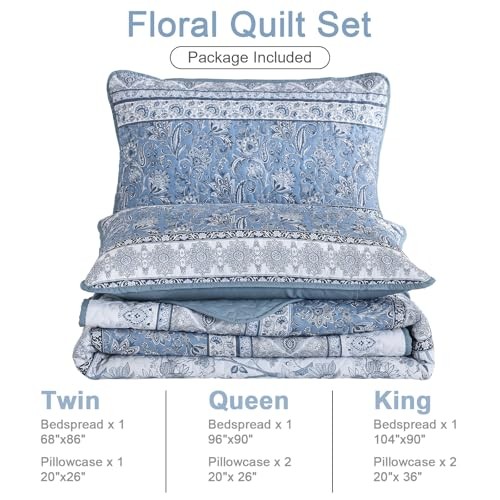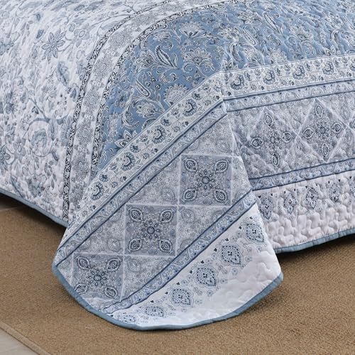 Boho Quilt Set Queen Size Striped Bedspread Floral Bedding Queen 96 90 Blue