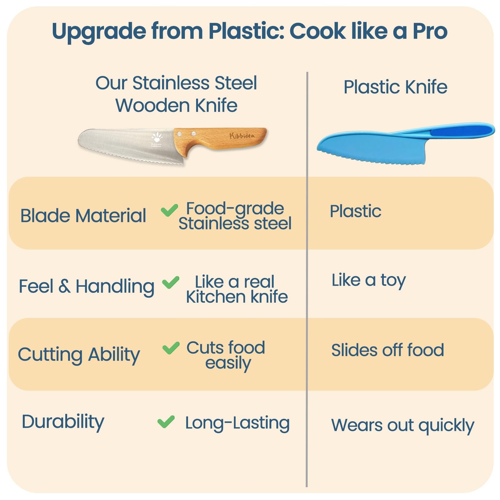 Included Components: Kids Chef Knife, Kids Fruit Knife, Kids Bread Knife, Finger Guard