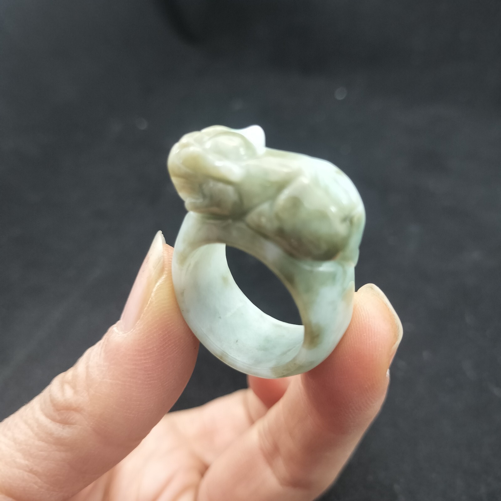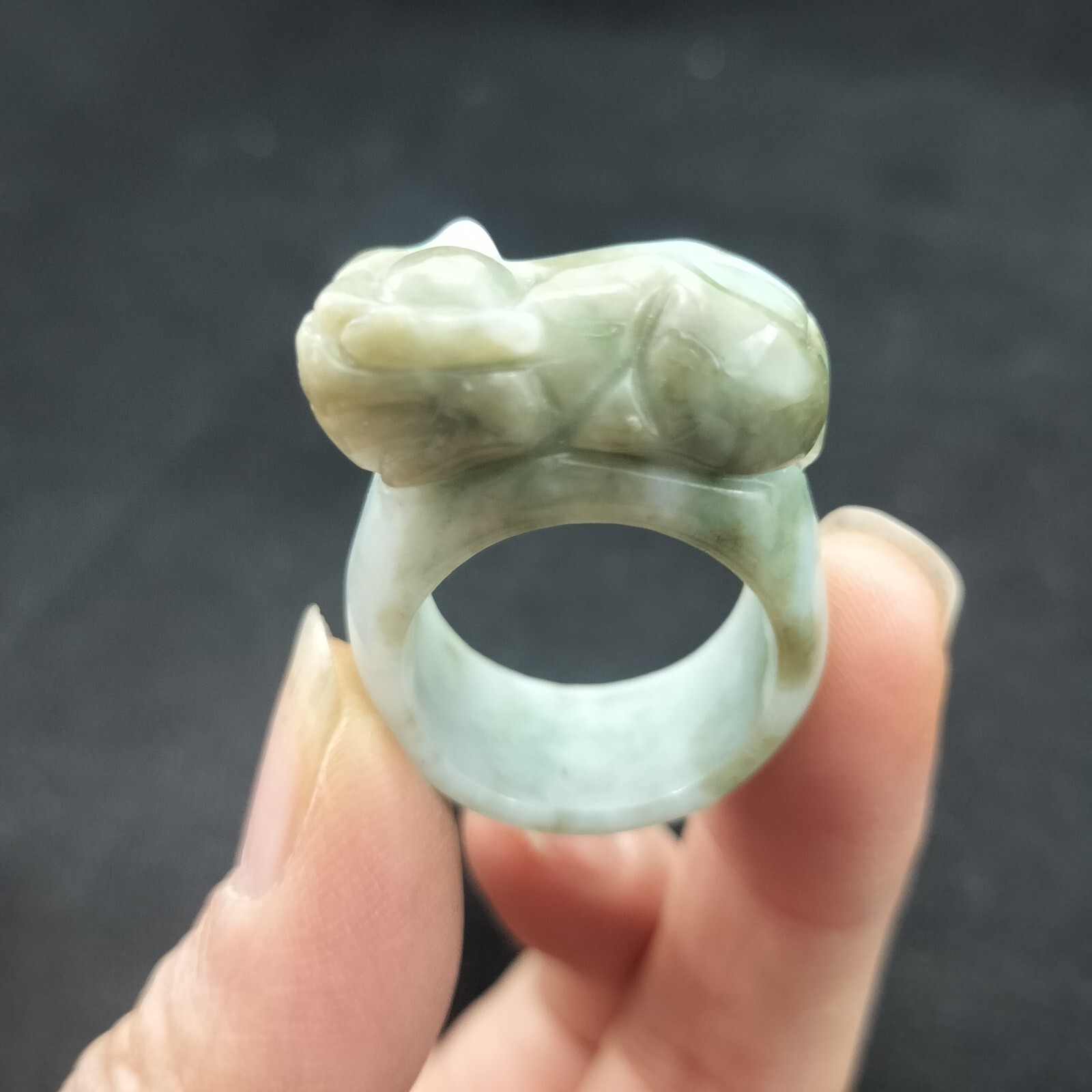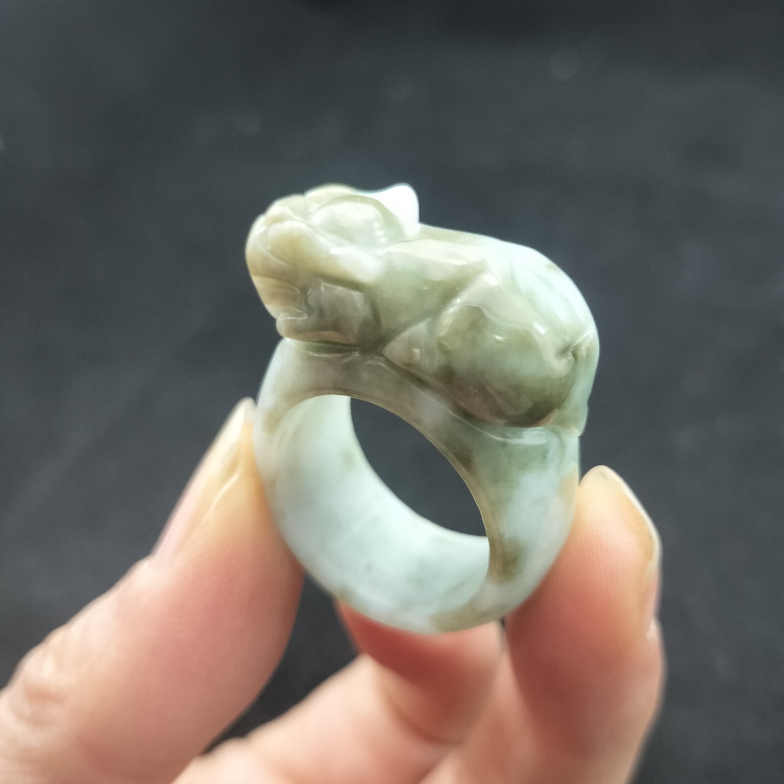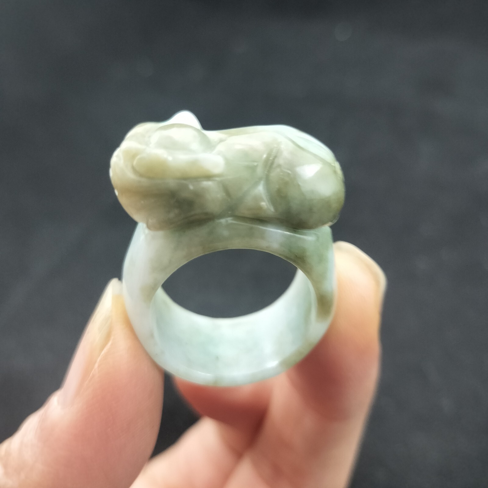 как выглядит Certified Natural Type A Jade Jadeite Carved Dragon Pi Xiu Feng Ring Inner 20mm фото