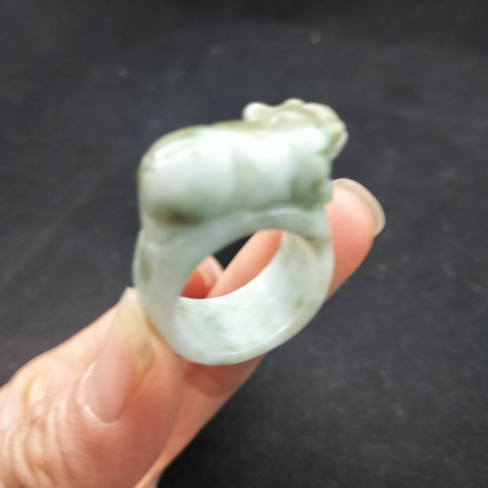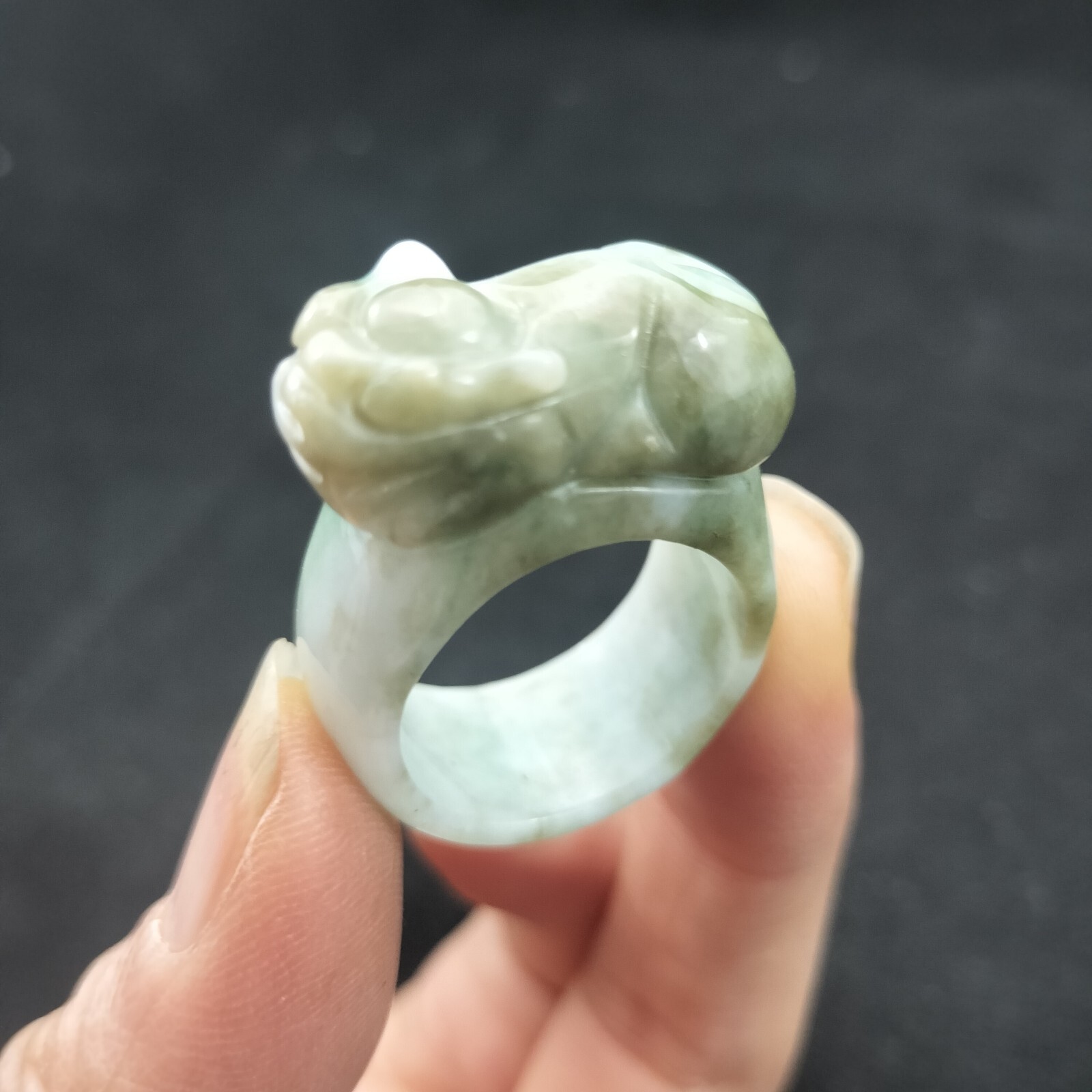 Certified Natural Type A Jade Jadeite Carved Dragon Pi Xiu Feng Ring Inner 20mm