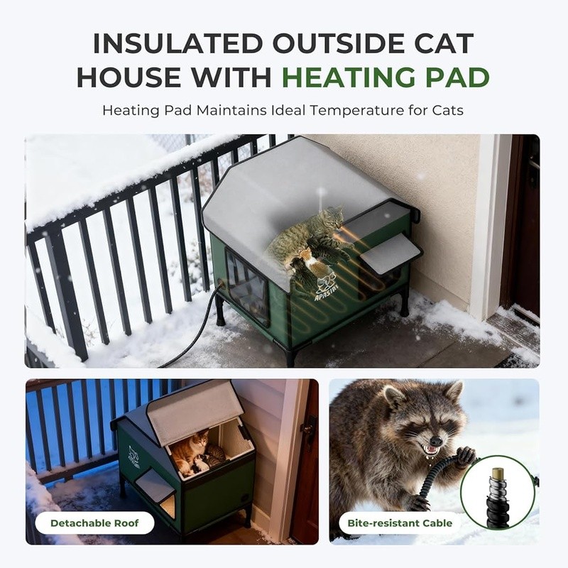 Insulated Outdoor Cat House Weatherproof Heated Multi-Functional Shelter Cats US
