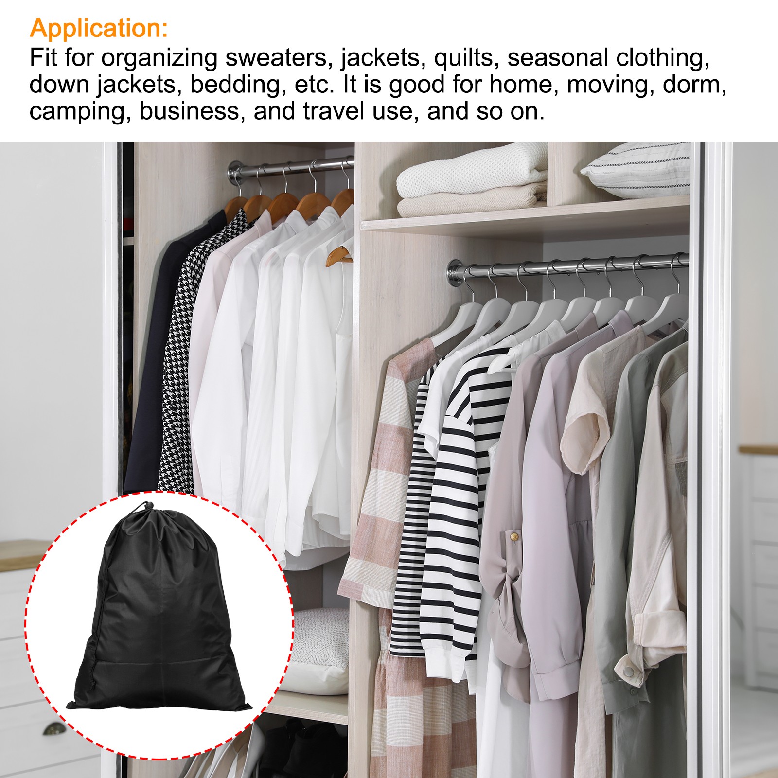 как выглядит Clothes Drawstring Bag Containers, 2pcs 25.6" Height for Home, Black фото