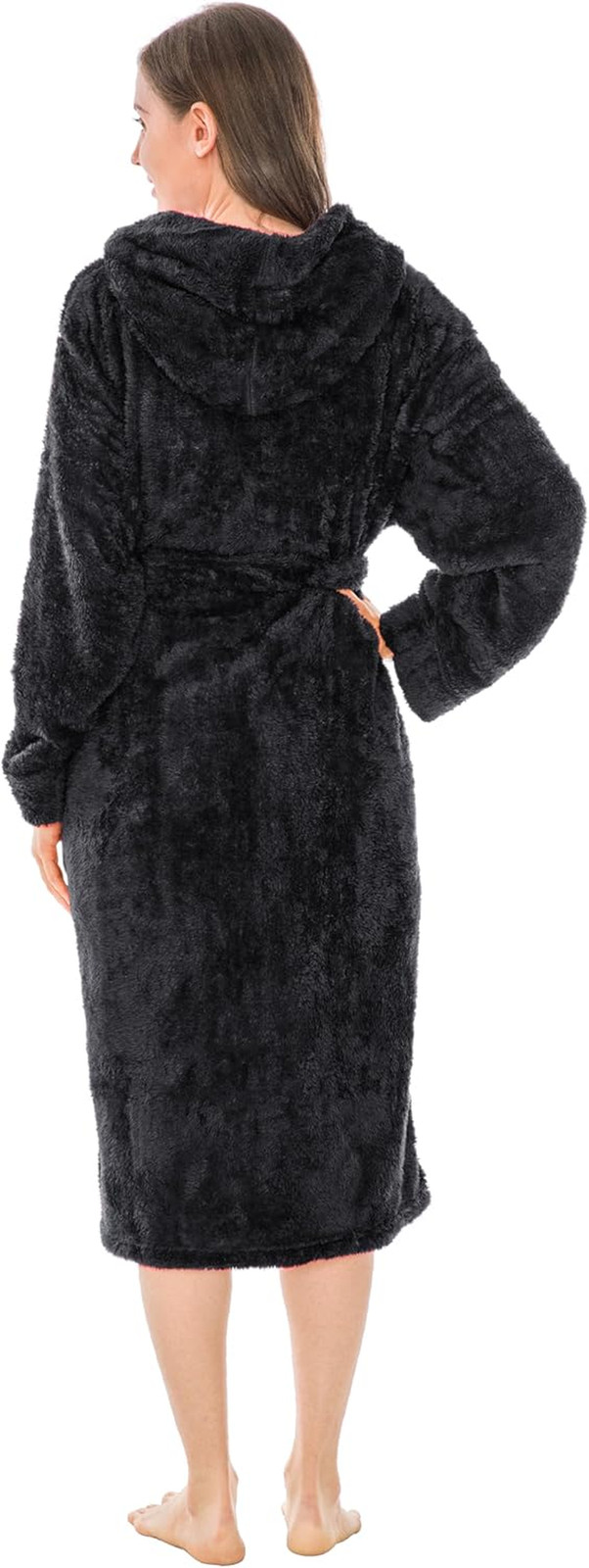 Women Hooded Plush Soft Robe Fluffy Warm Fleece Sherpa Shaggy Bathrobe
