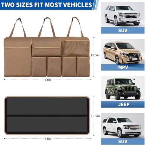 Car Trunk Organizer, Backseat Hanging Organizer with Storage 43 x 18.5 Brown