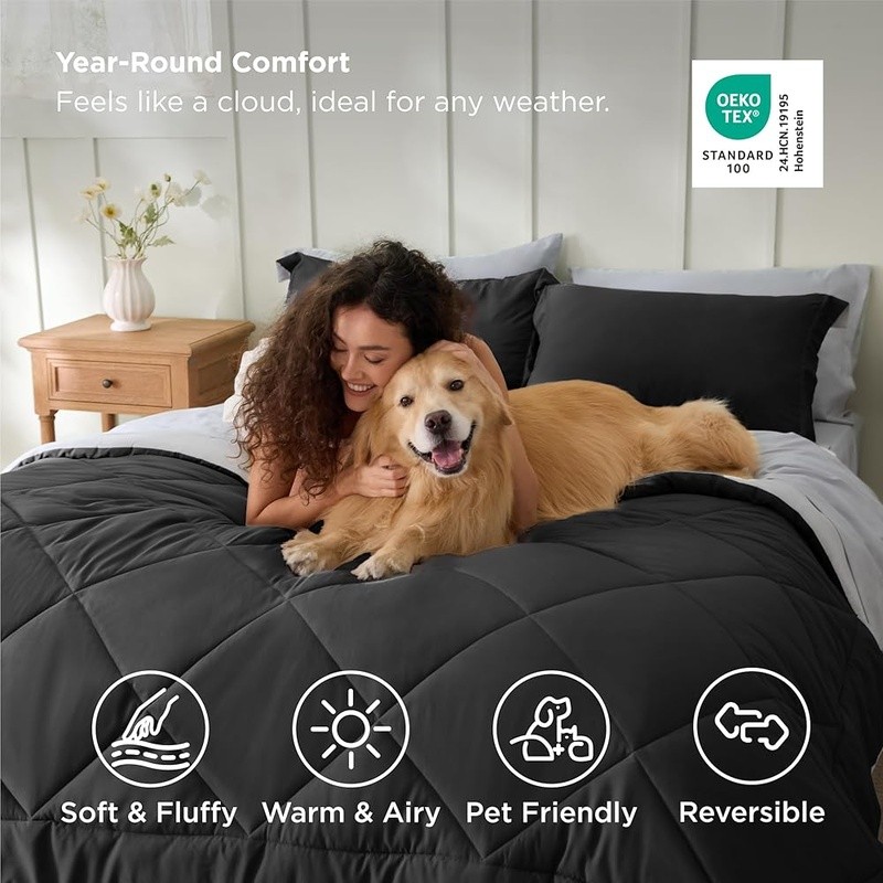 Reversible 7pc Bed Set Comforter Soft Warm Microfiber Sheets Pillowcases Durable