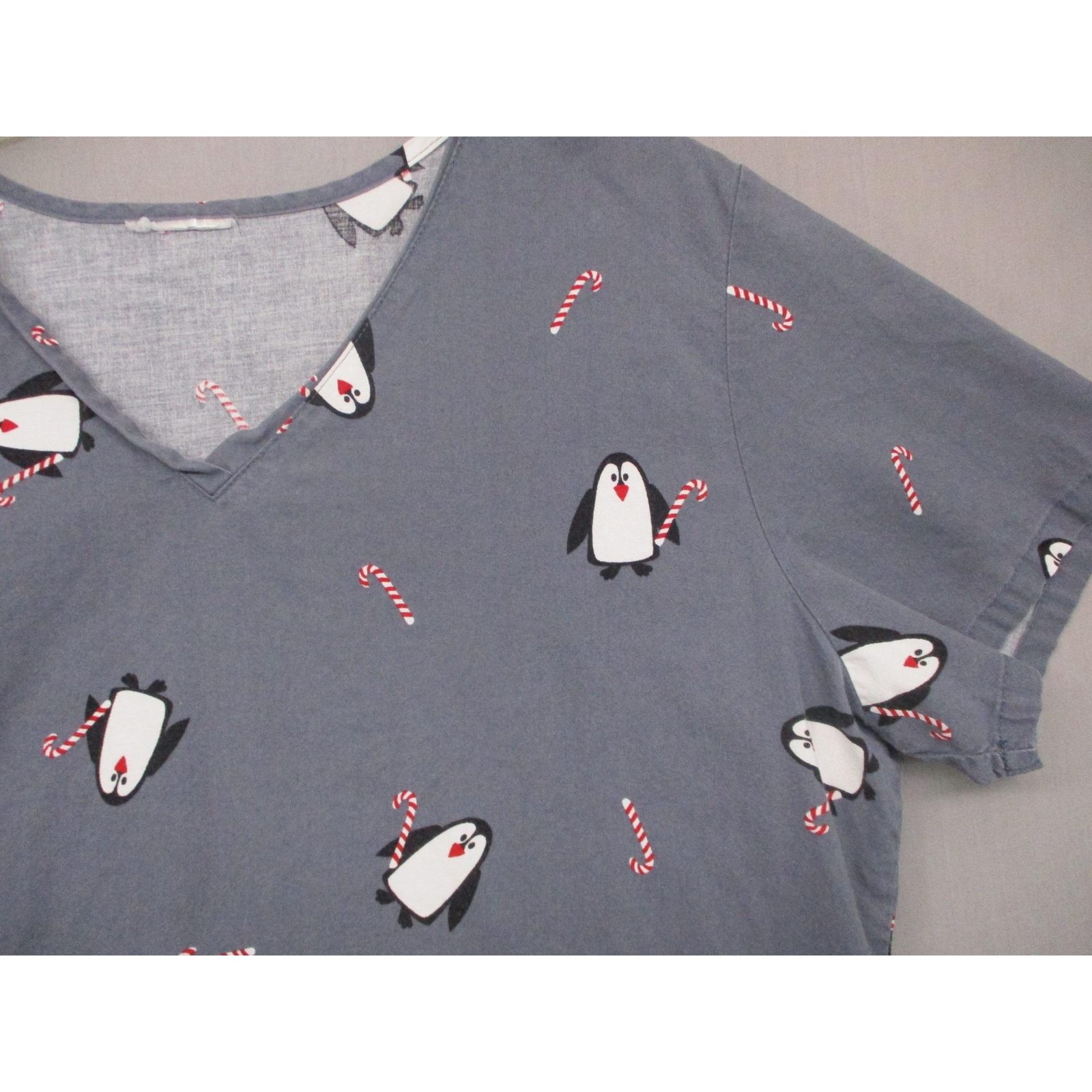 Penguin Candy Cane V-Neck Scrub Top Womens Size L