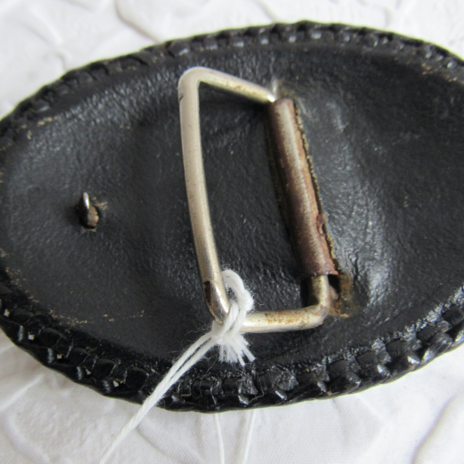 Vintage Genuine Snake Skin Belt Buckle Hand Laced Leather Rattlesnake 4L x 3W