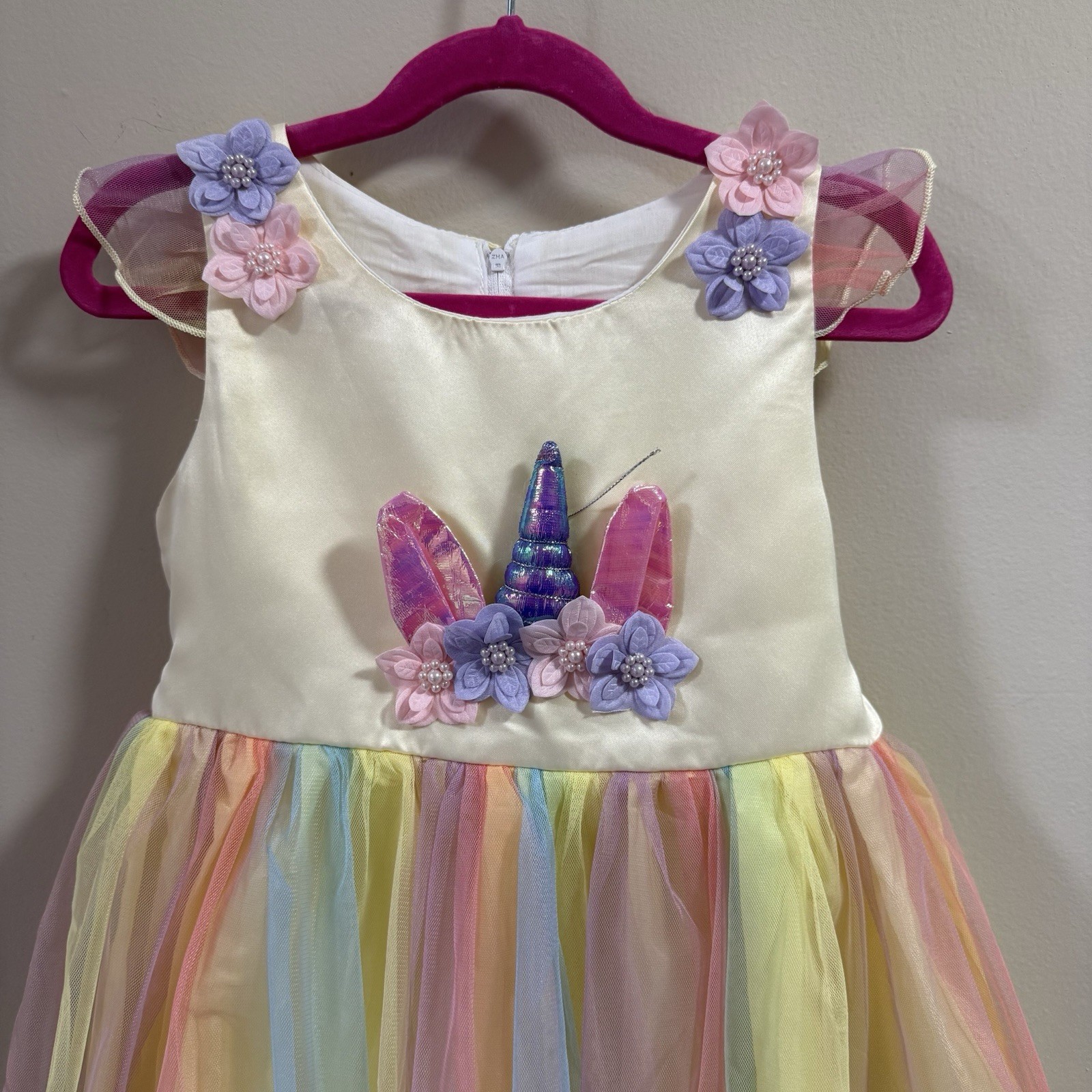 Girls Sz 8 Unicorn Party Tulle Rainbow Dress Yellow Appliqu Special Occasion
