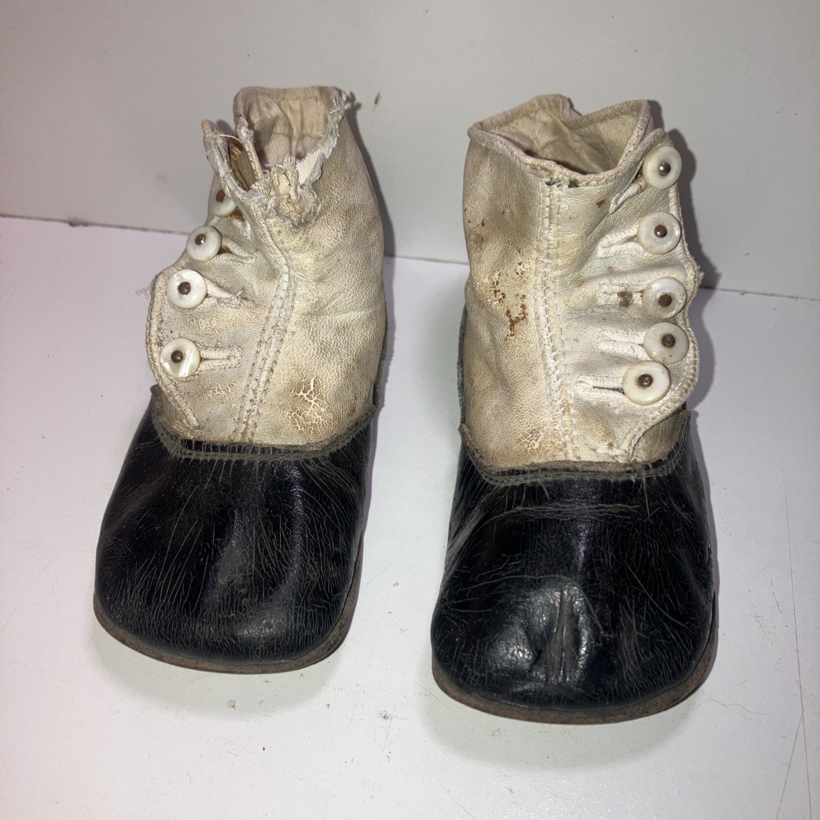 Victorian Era Antique Baby Shoes Boots Button-Up Leather Toddler Kids'