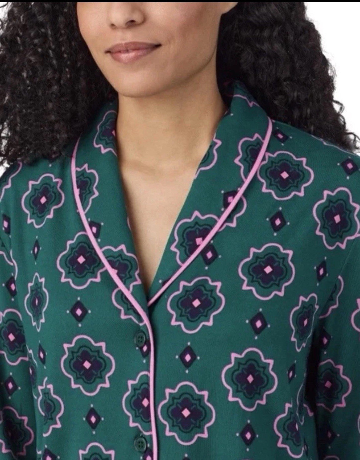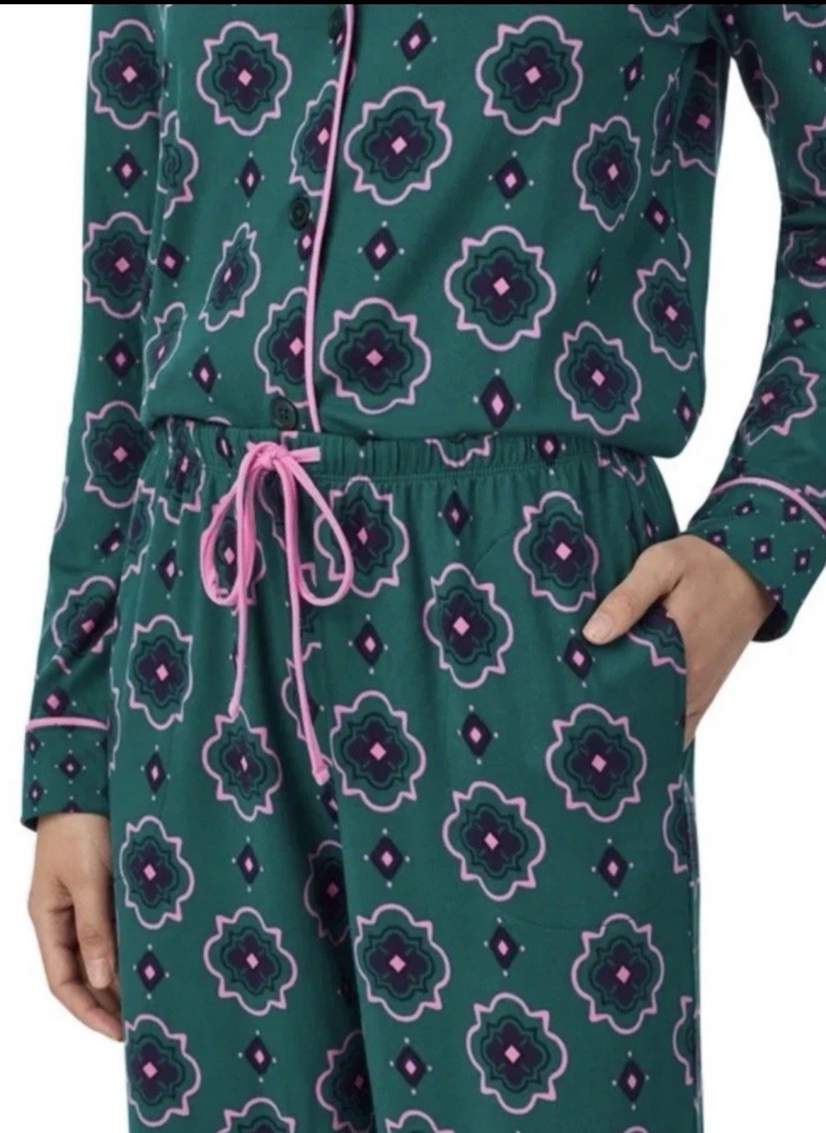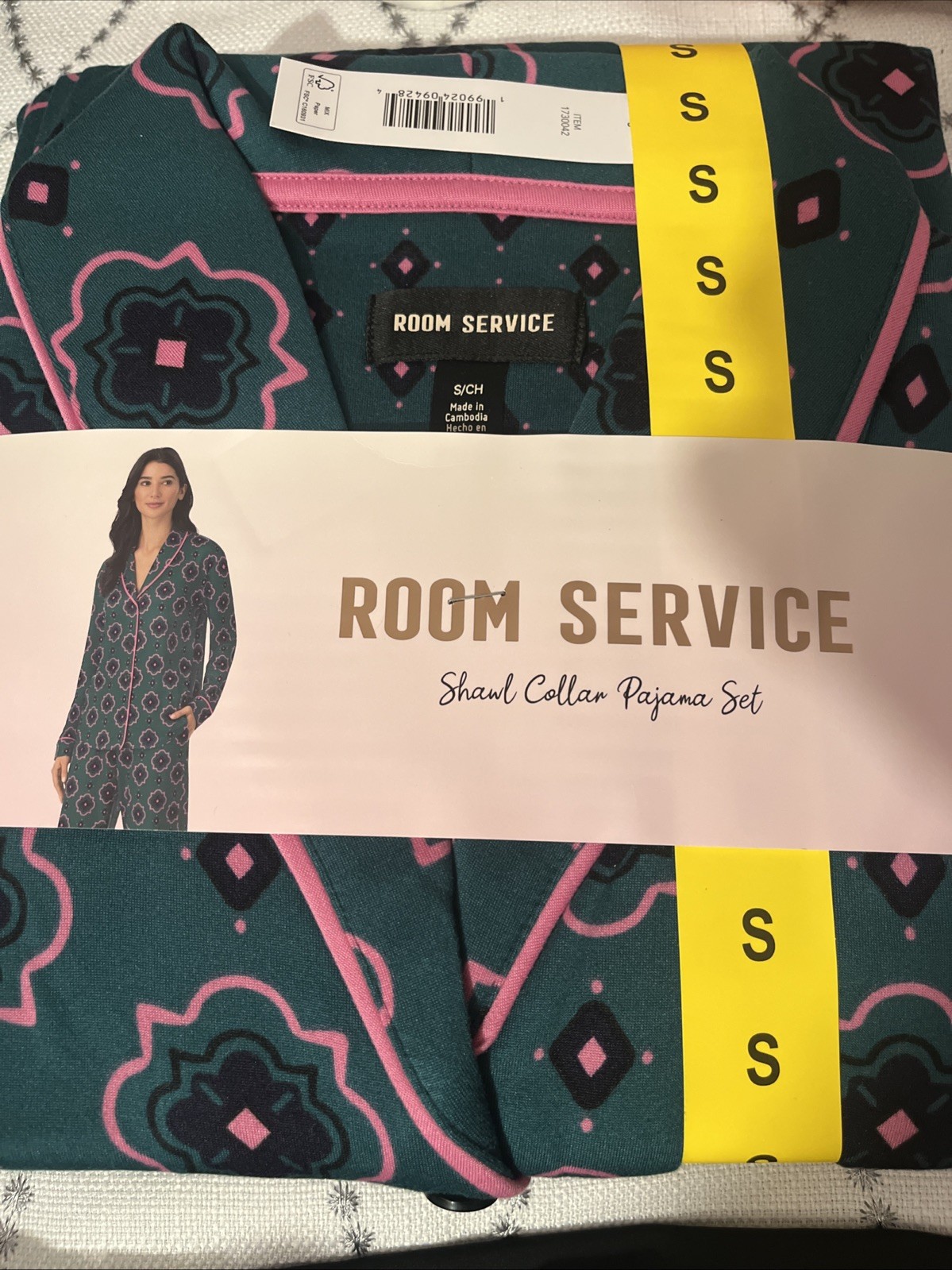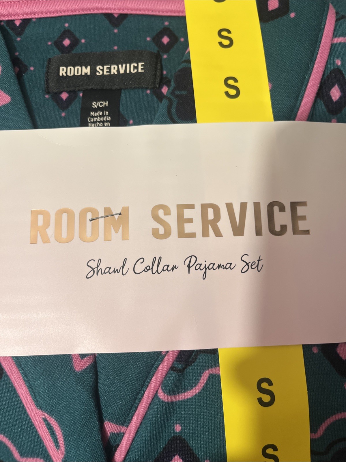 NEW Room Service Women's Small Shawl Collar Pajama Set Green Floral Print