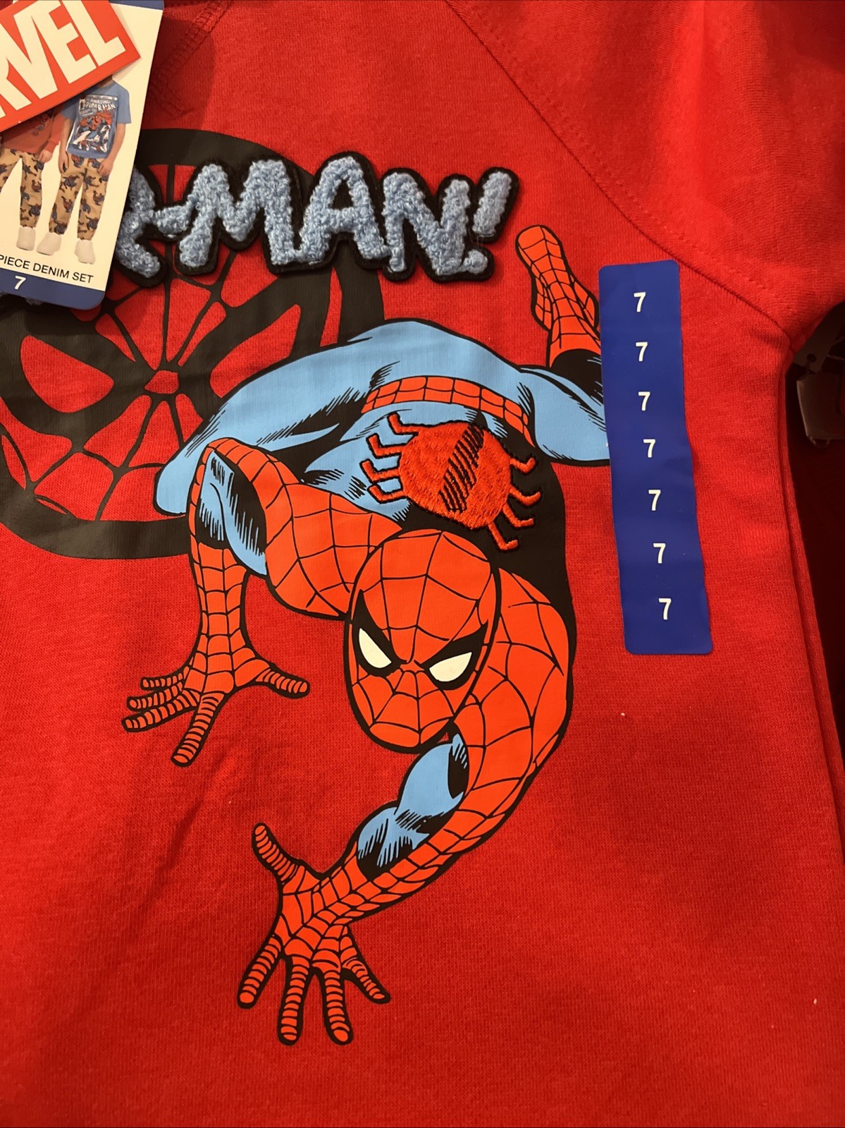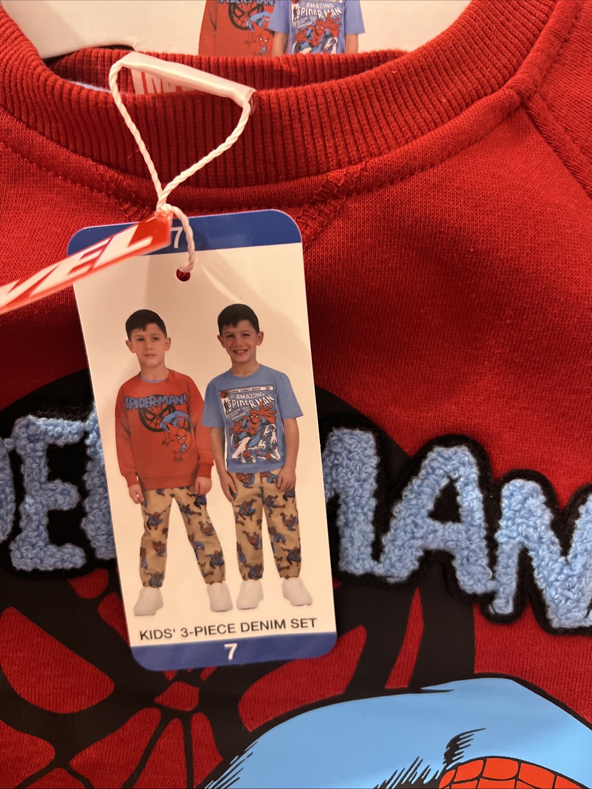 New Marvel Spider-Man Red Blue Outfit Character Kids' 3-Piece Denim Set Size 7