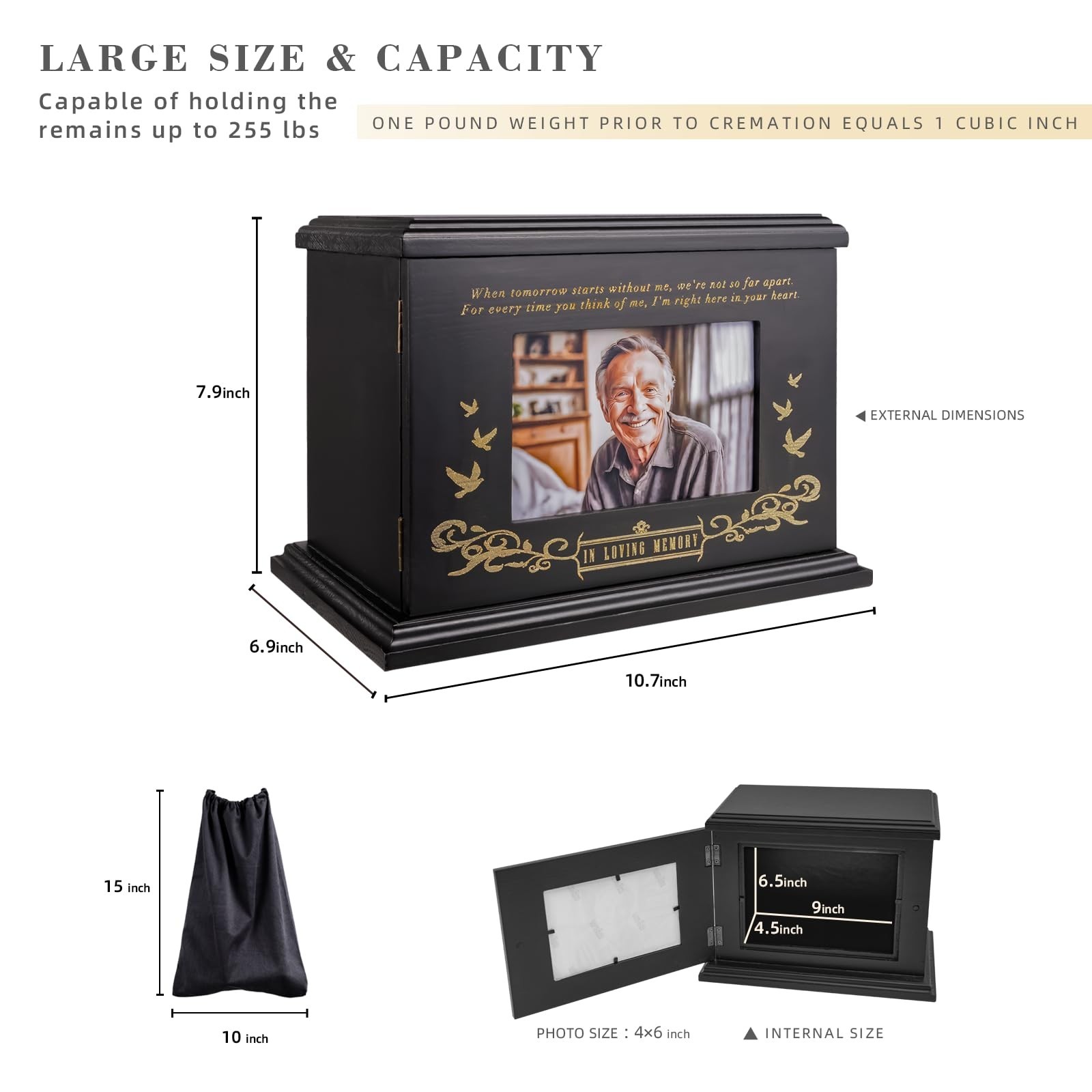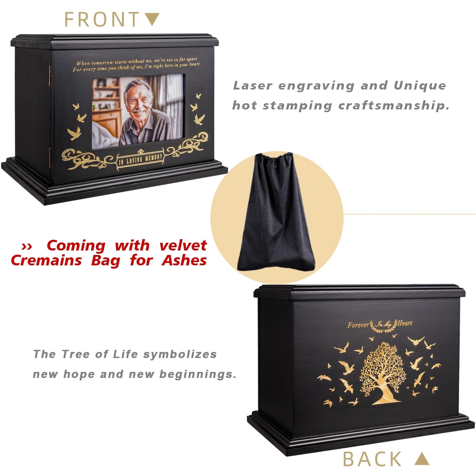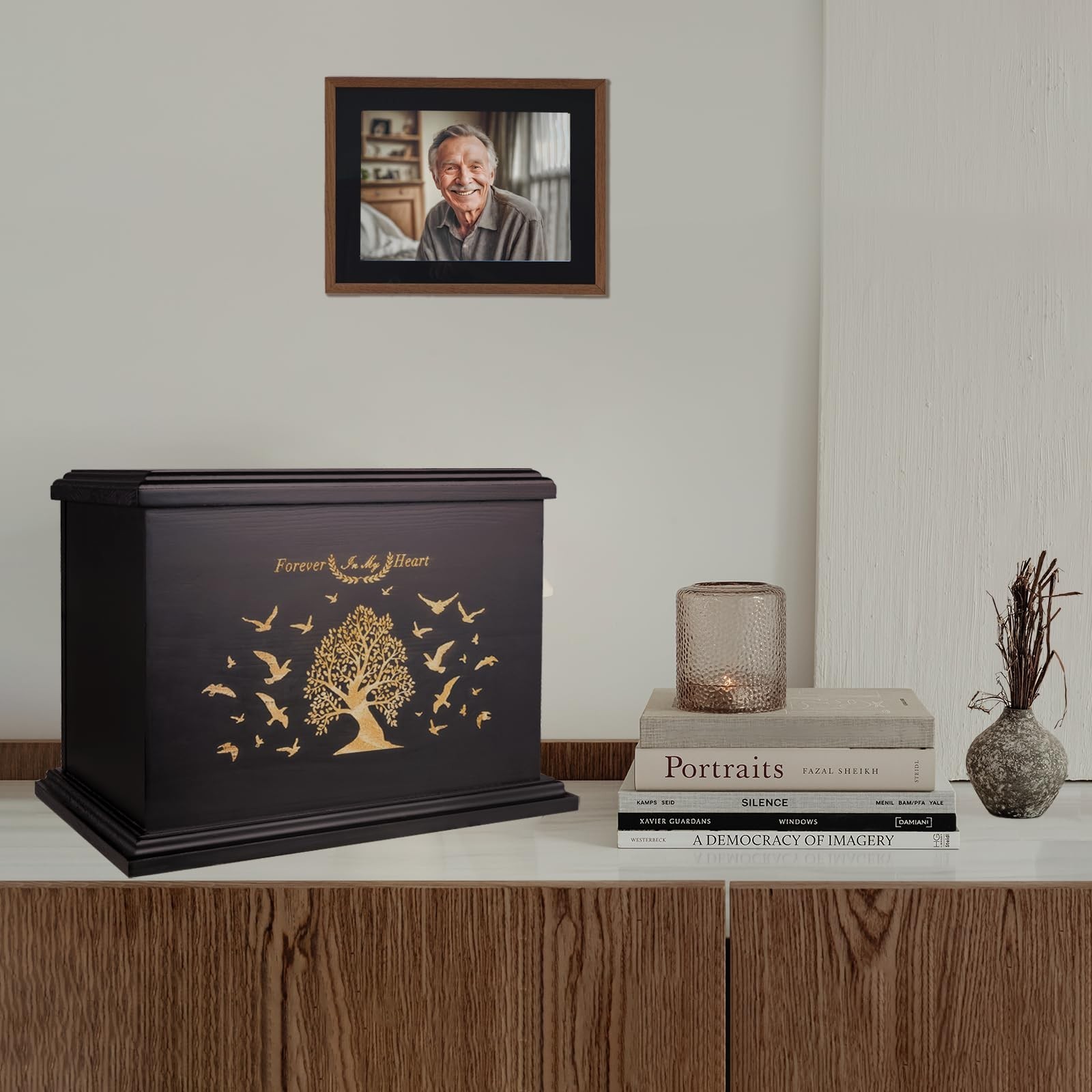 Cremation Urns for Human Ashes Adult Male Female, Wooden Urn for Ashes, Woode...