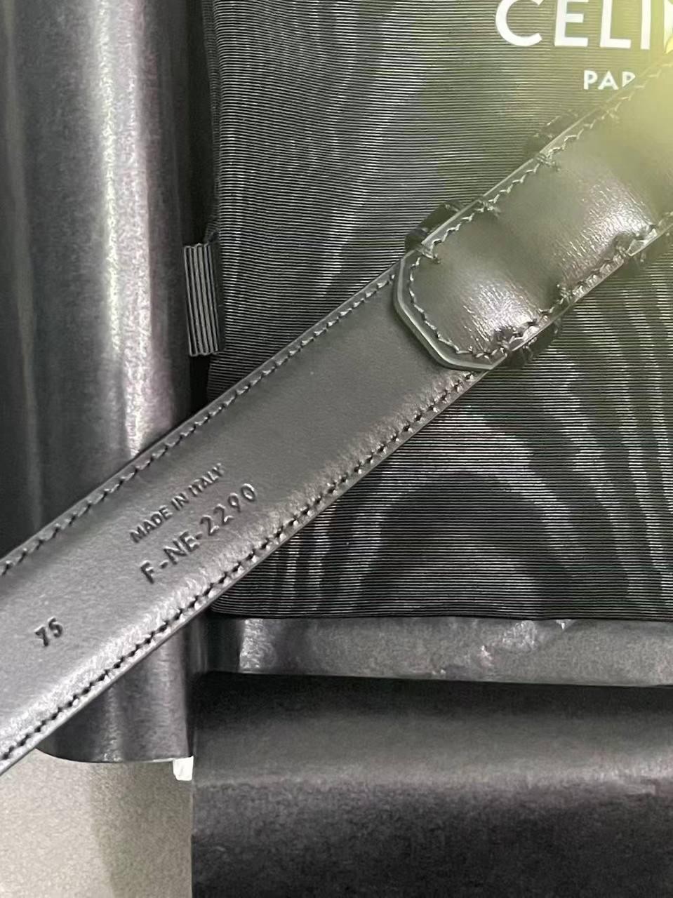 как выглядит CELINE Medium Triomphe Belt Black Leather Gold Buckle 75cm фото