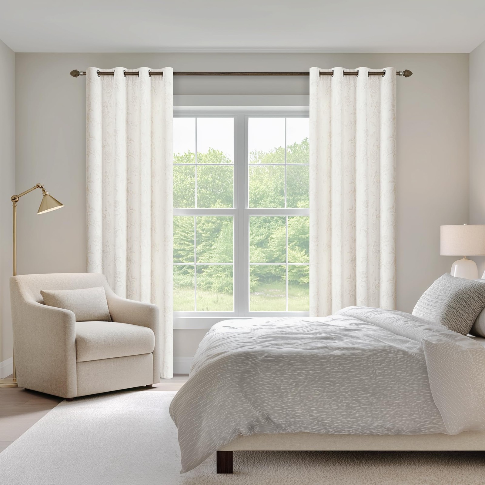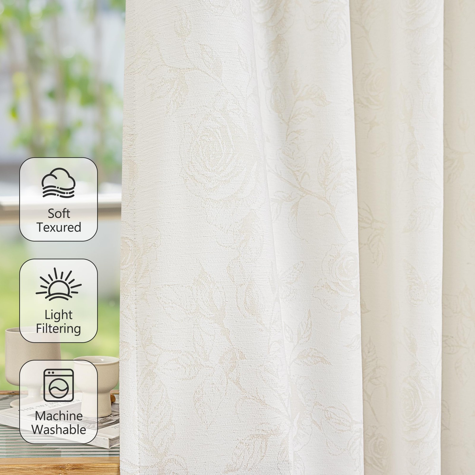 Beige Floral Jacquard Curtains for Bedroom, Rose Flower Patterned Curtains 96...