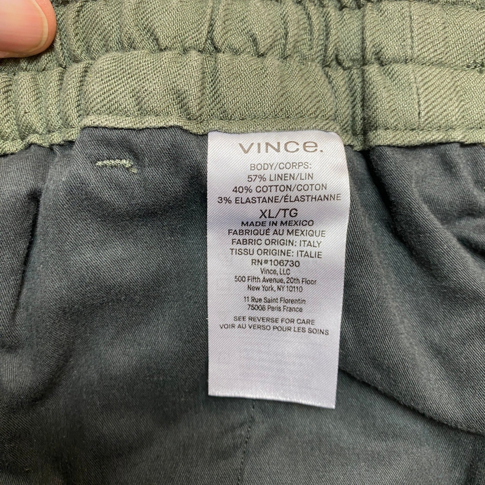 Vince Pants Mens Size XL Olive Green Linen Blend Elastic Waist Drawstring