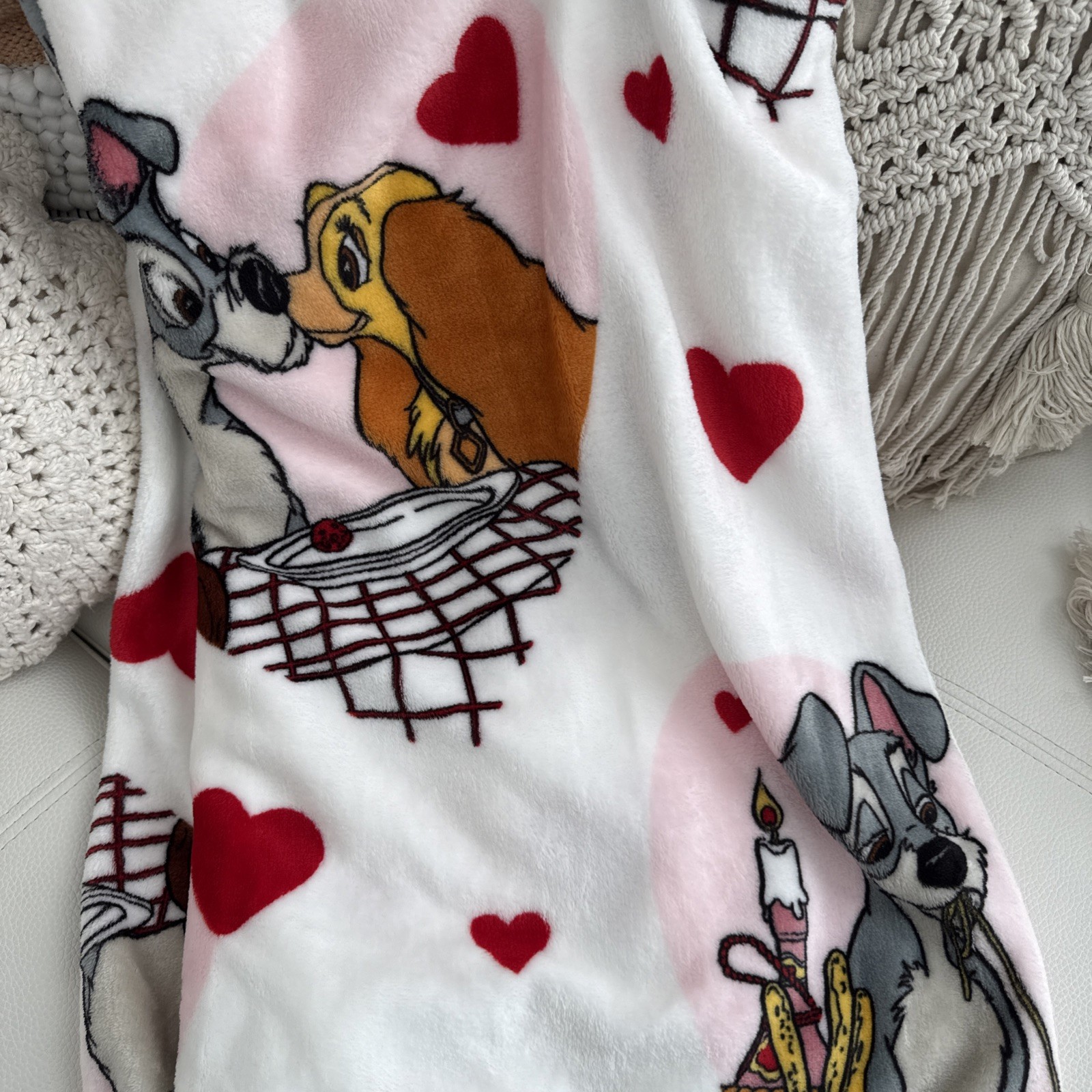 Disney lady and the tramp plush throw blanket 50 x 70 Hearts Valentines Day