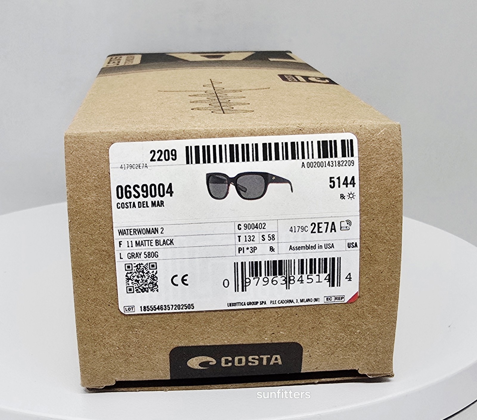 COSTA DEL MAR matte black/gray WATERWOMAN 2 polarized 580G sunglasses NEW