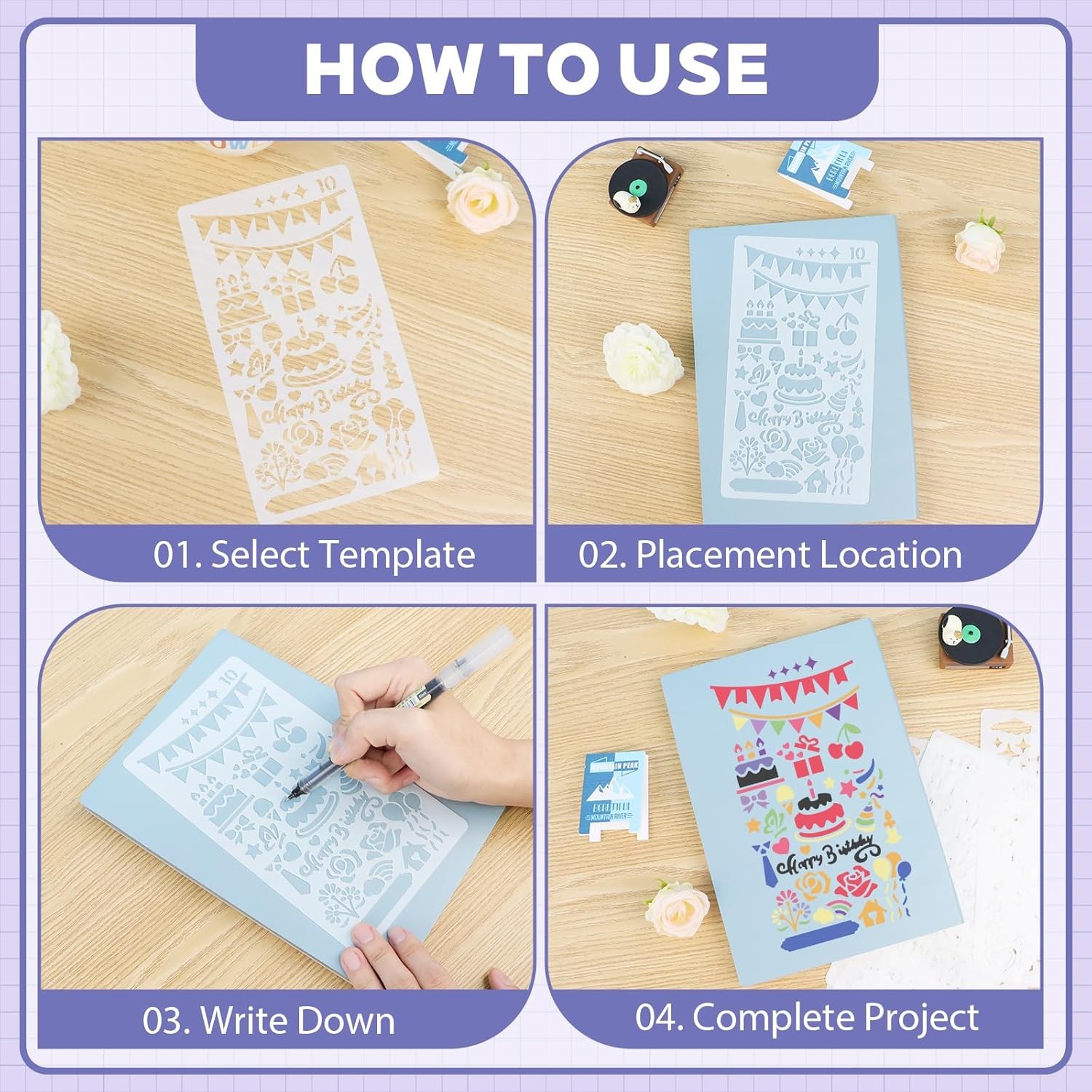 30 PCS Journal Stencils, Plastic Planner Stencils 4x7 Inch for Bullet Journaling