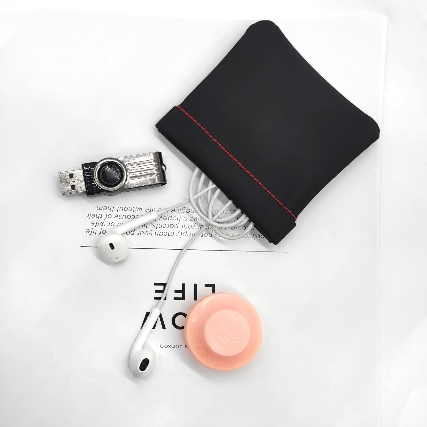 как выглядит Quacc 3Pcs Earphone Pouch PU Leather Headphone Storage Bag Universal Spring Bag фото