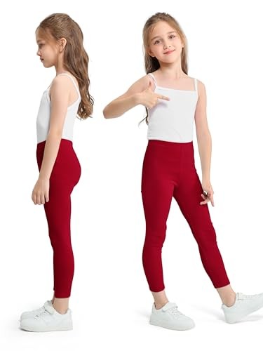 4 Pack Girls Cotton Leggings Ankle Length 10-12 Years Black,grey,navy,burgundy
