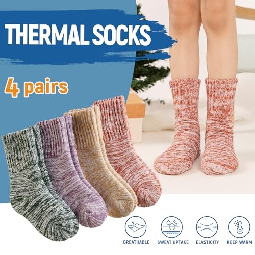 Kids Heated Hiking Socks Winter Children Thick Soft 8-12 Years Multicolor a