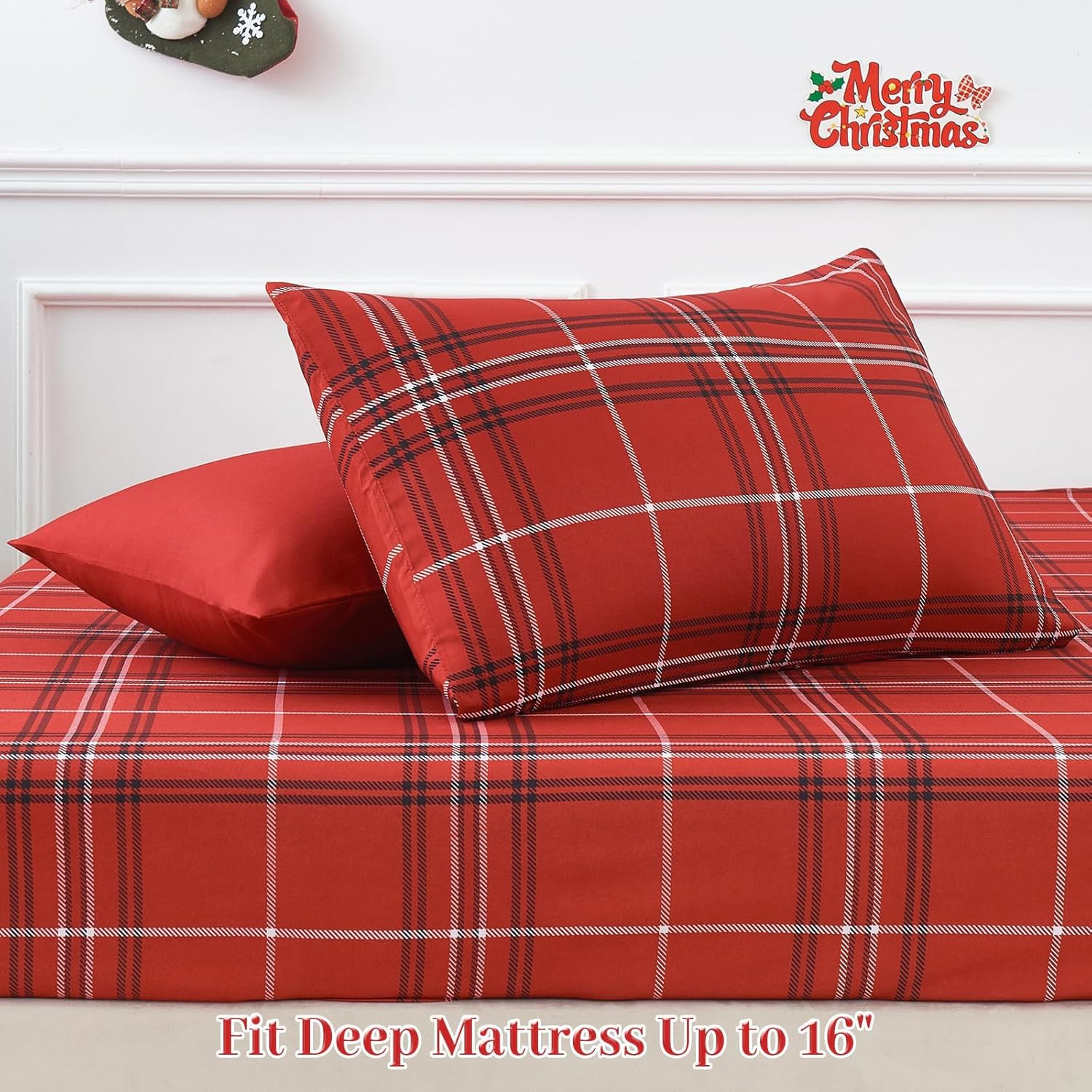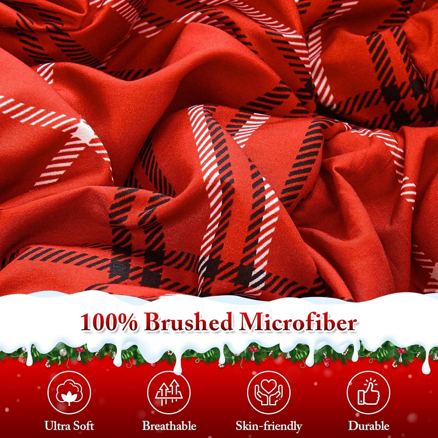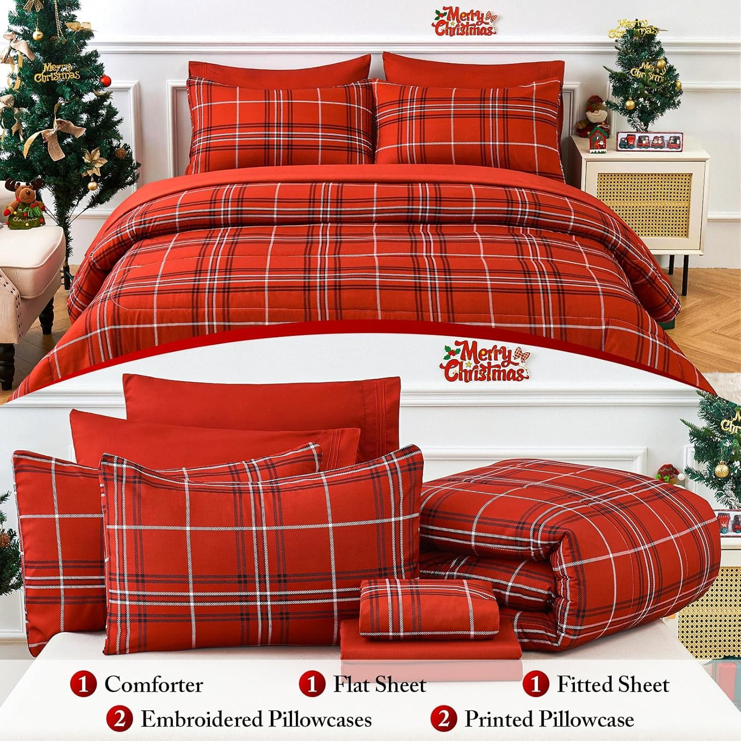 Christmas Comforter Set, 7 Pieces Bed in a Bag, Christmas Bedding Sets with Comf