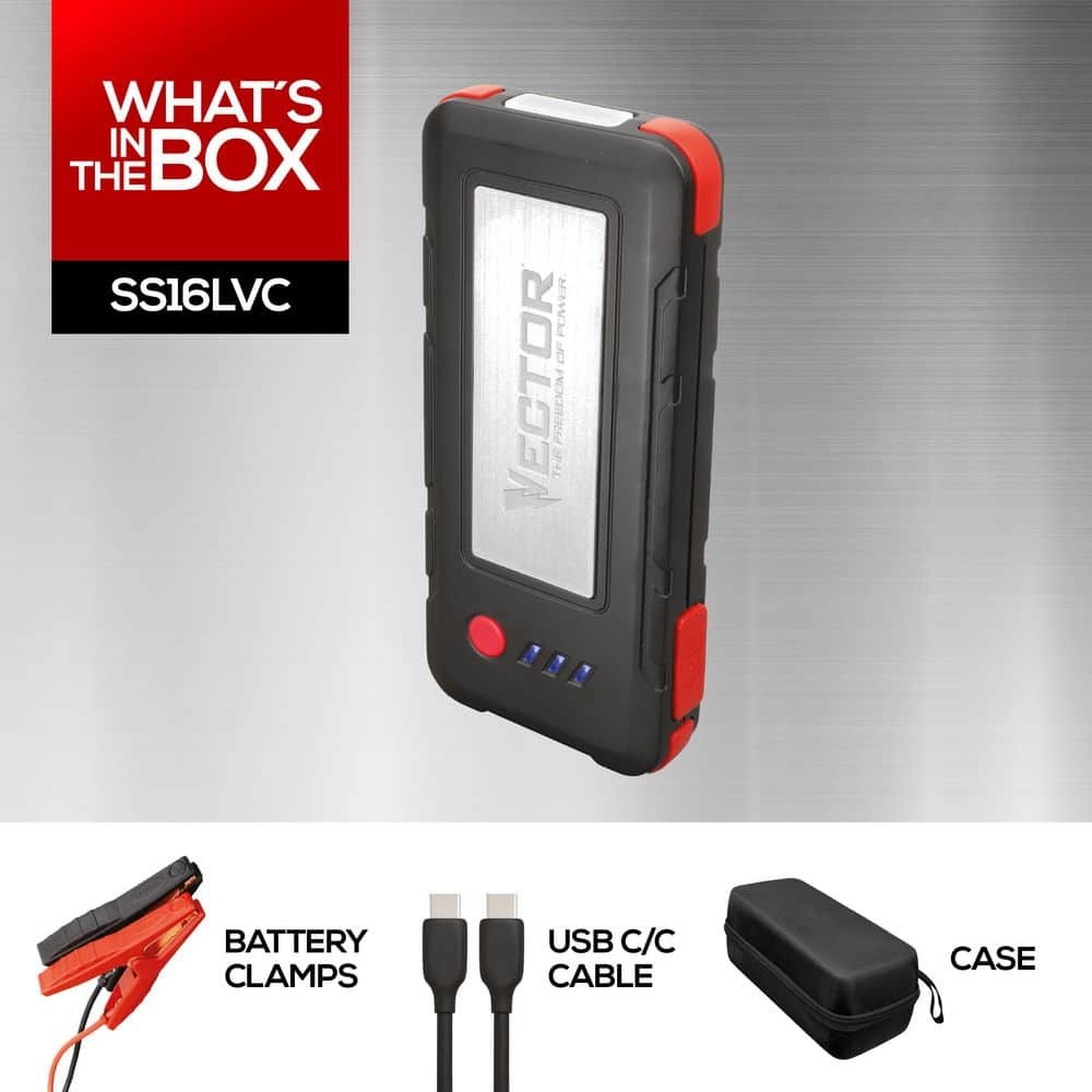 VECTOR 1600 Peak Amp Automotive Lithium Jump Starter w/ USB-A 15W , USB-C 30W