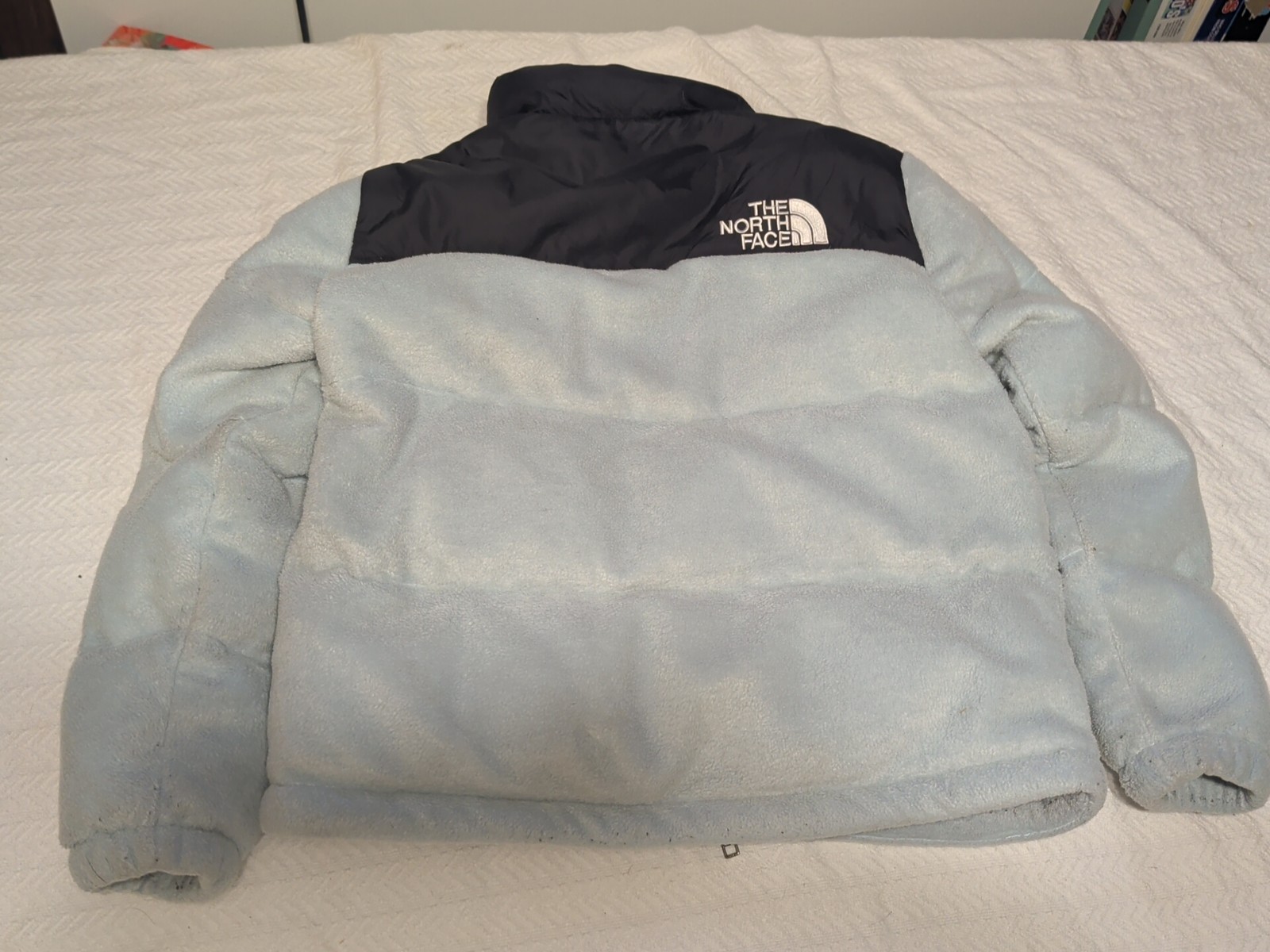 как выглядит The North Face Jacket Youth Large 12 Light Blue Black Fleece Puffer Insulated фото