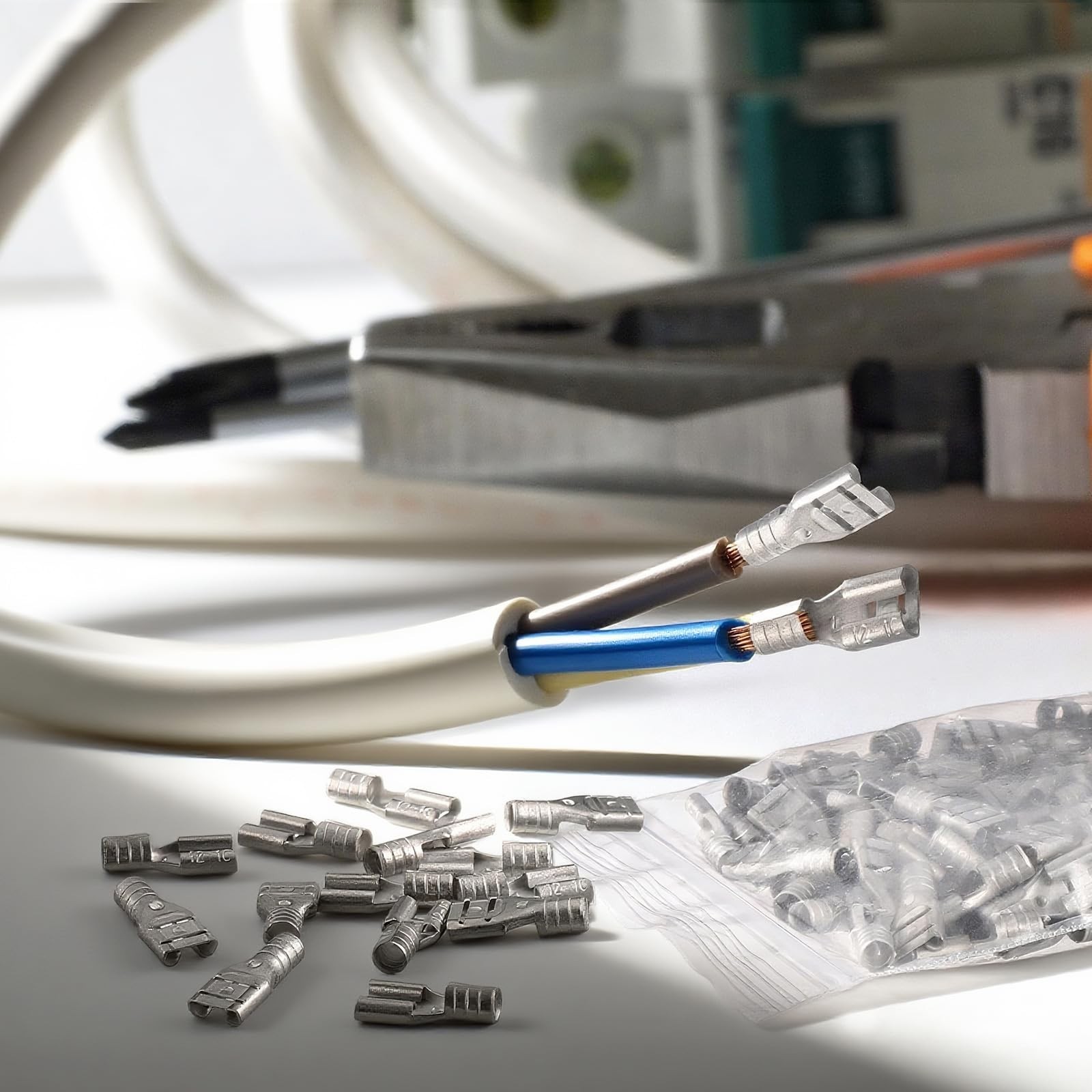 как выглядит 50 Pcs High Temp Female Spade Connectors 12-10 Gauge 1/4" Quick Disconnect for W фото