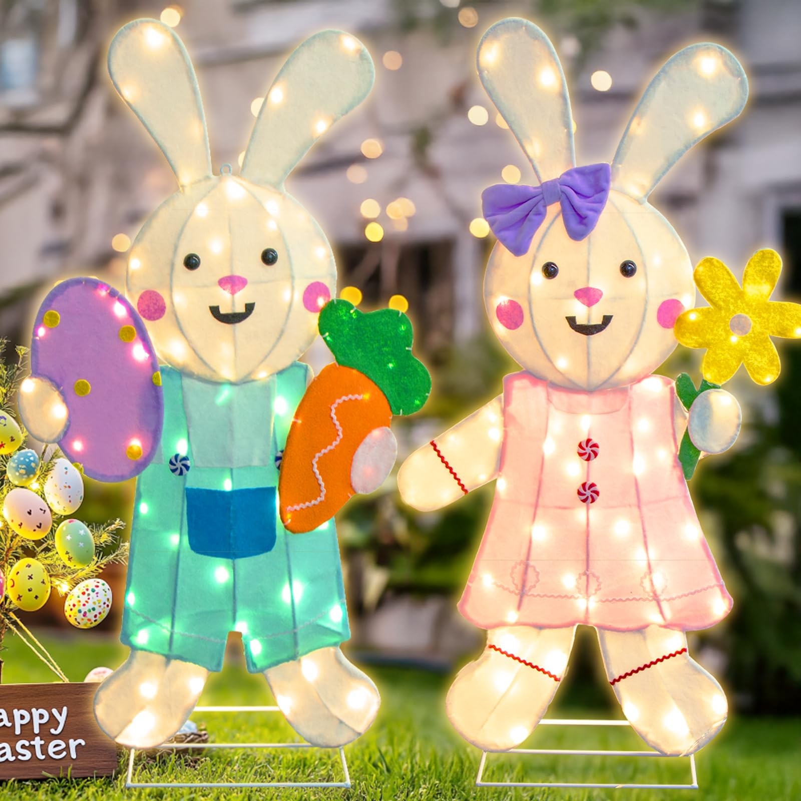 Easter Decorations Outdoor, 2PCS Easter Bunny Lights Yard Decoration Outdoor ...