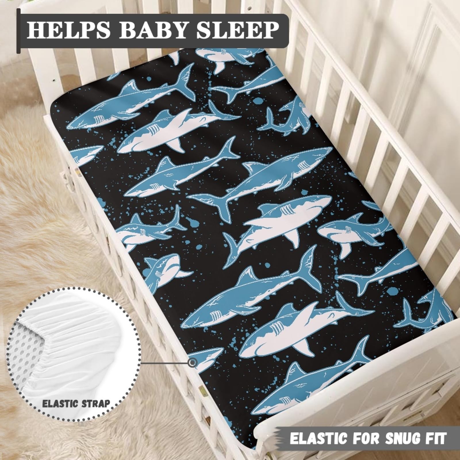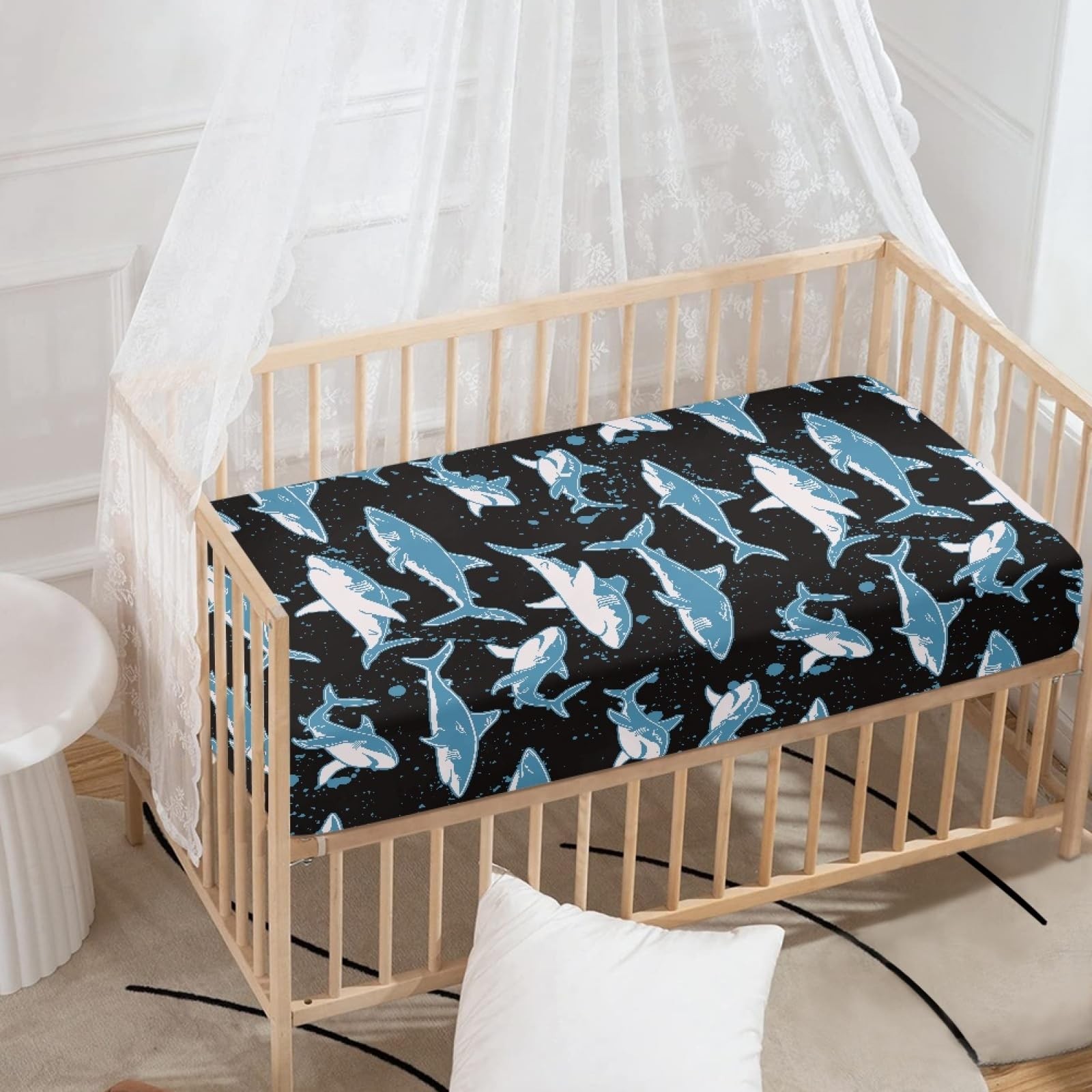 Blue Sharks Fitted Crib Sharks Baby Crib Fit Standard Crib and Mattress,Crib ...