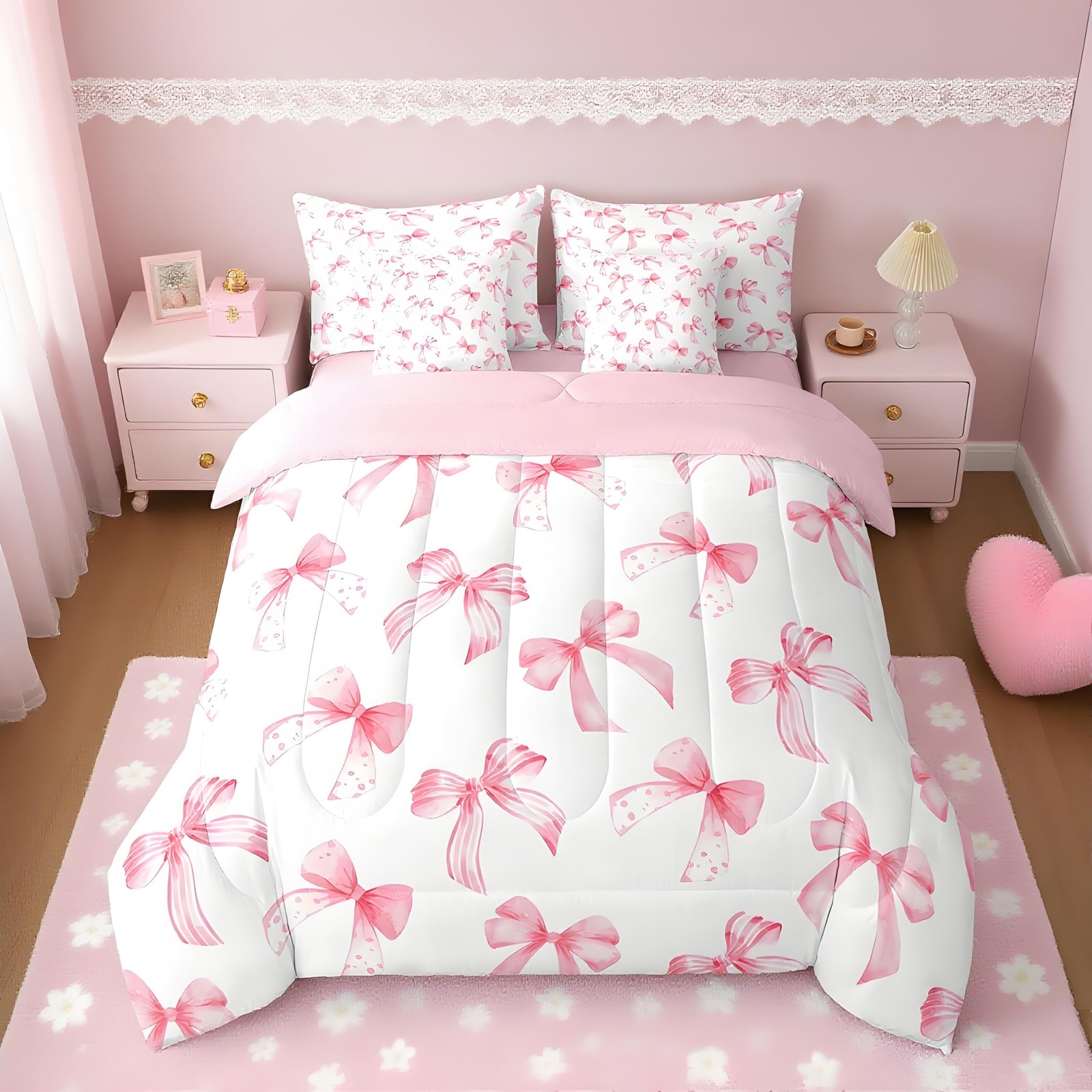 Pink Bow Bed Set for Boys Girls Full Size Cute Dreamy Princess Style 7 Pieces...