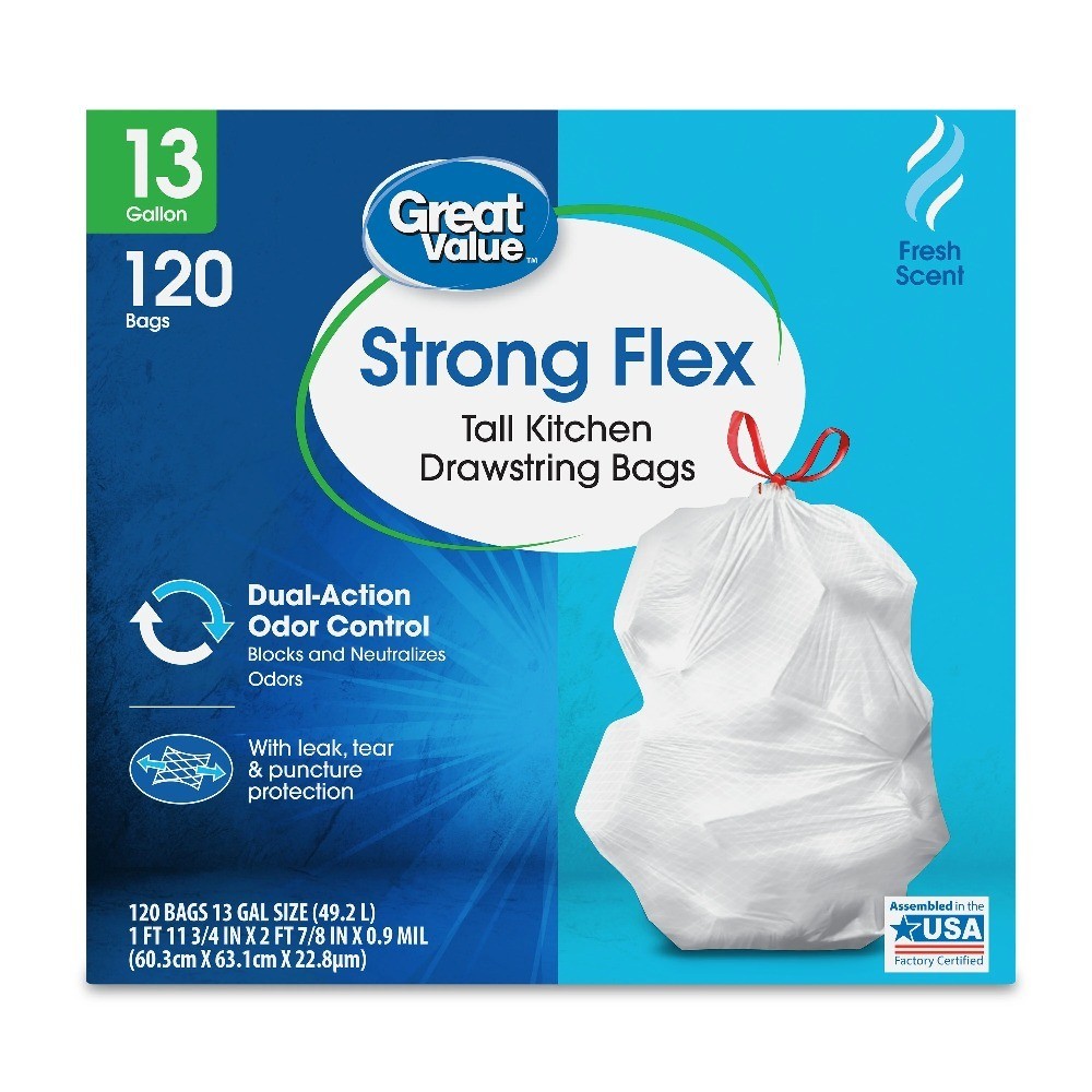 Strong Flex 13-Gallon Drawstring Tall Kitchen Trash Bags, Fresh Scent, 120 Bags