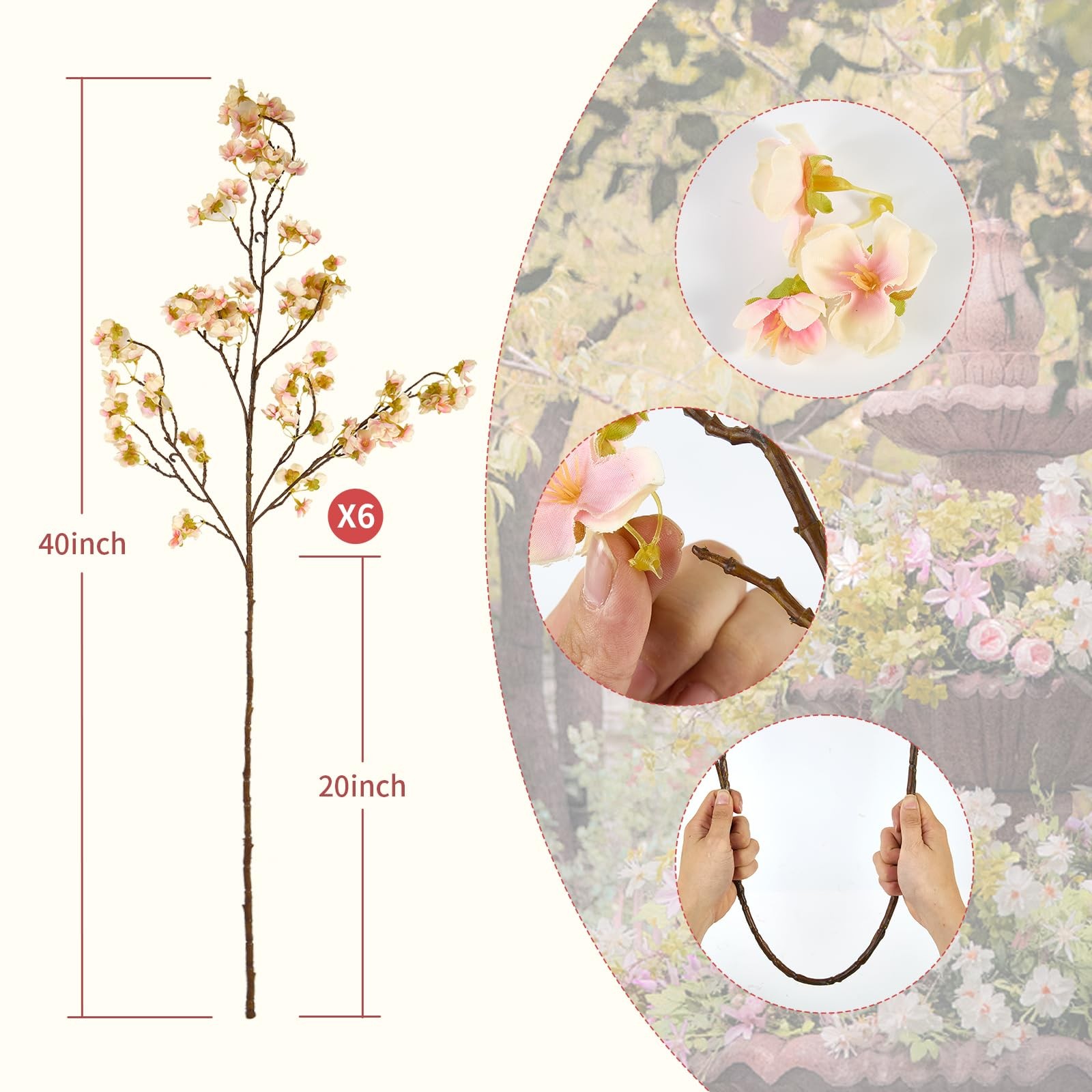 как выглядит 6 Pcs Artificial Cherry Blossom Flower Branches, Realistic Long Stem Silk Che... фото